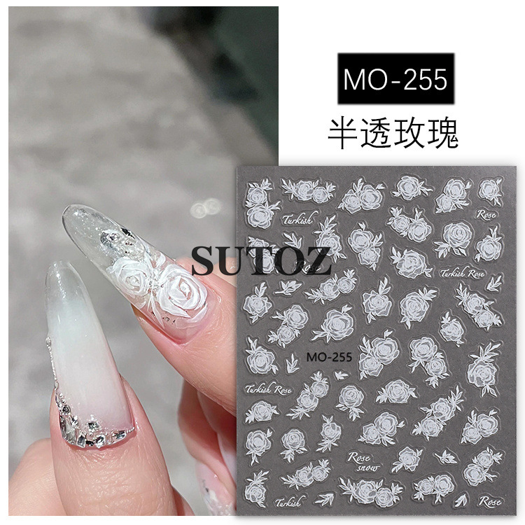2024 철자 저녁 새로운 네일 아트 스티커 여름 달콤한 쿨 반투명 로즈 수채화 네일 DIY 다시 접착 스티커스토어 가기