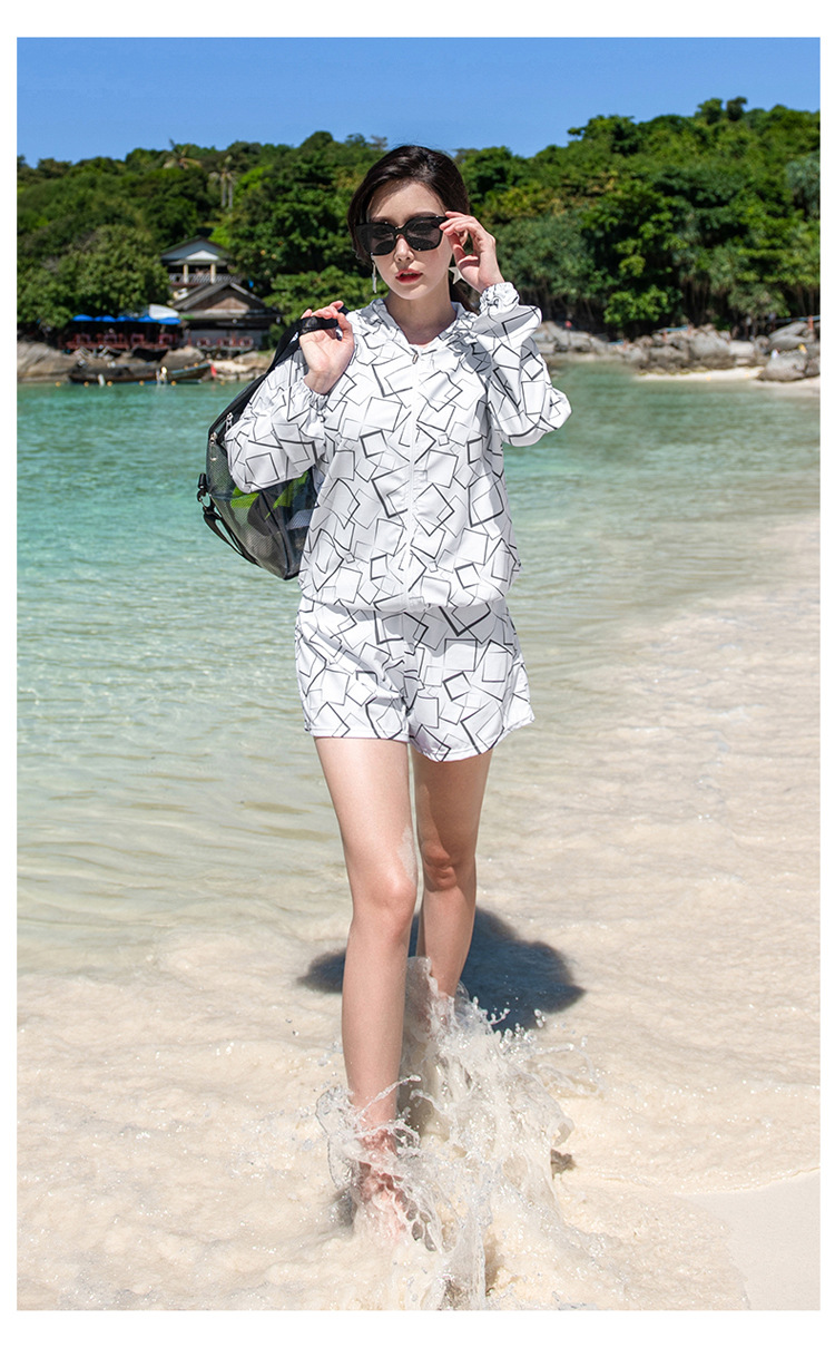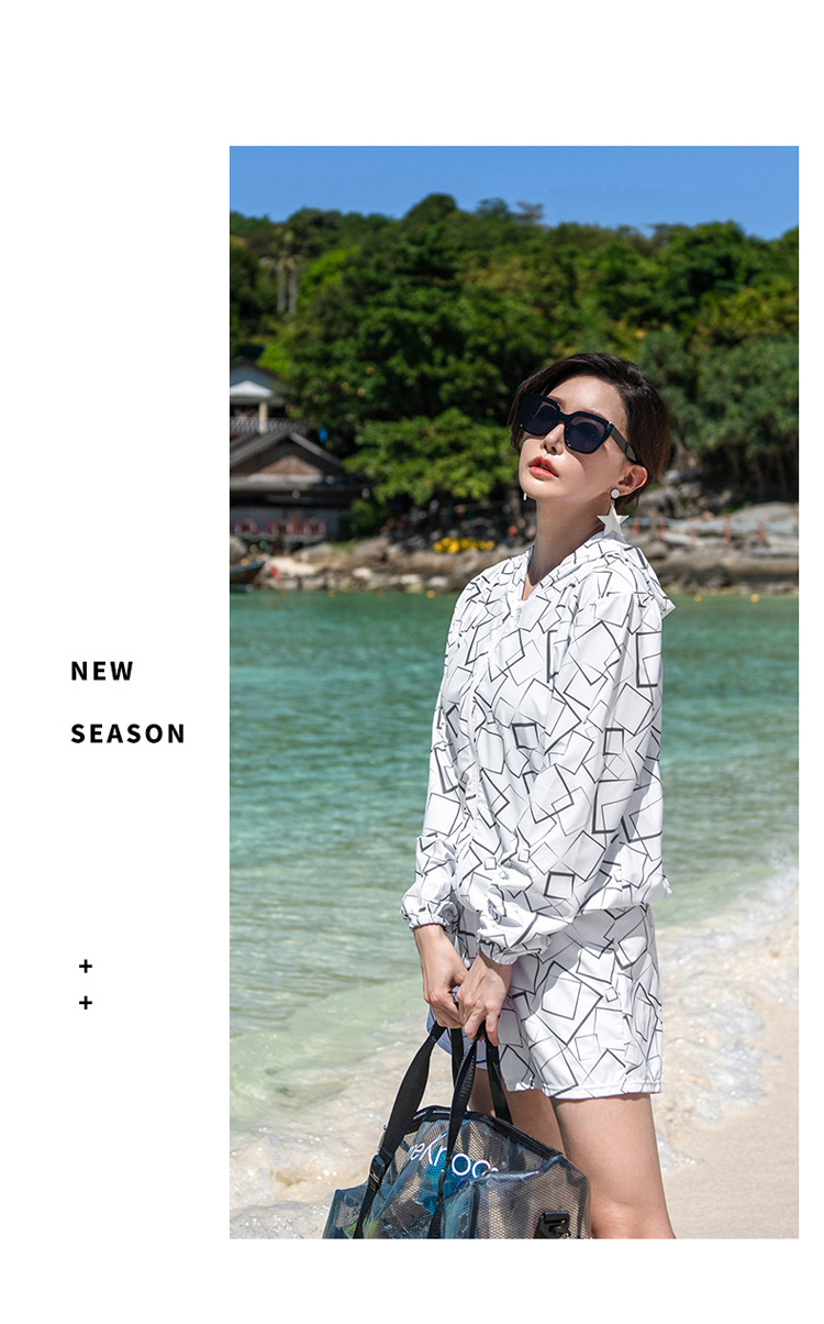 여자 통통녀 뉴 스포츠 3 피스 세트 후드 스플릿 보수적 인 육체 커버 슬리밍 온천 홀리데이 플러스 사이즈 수영복