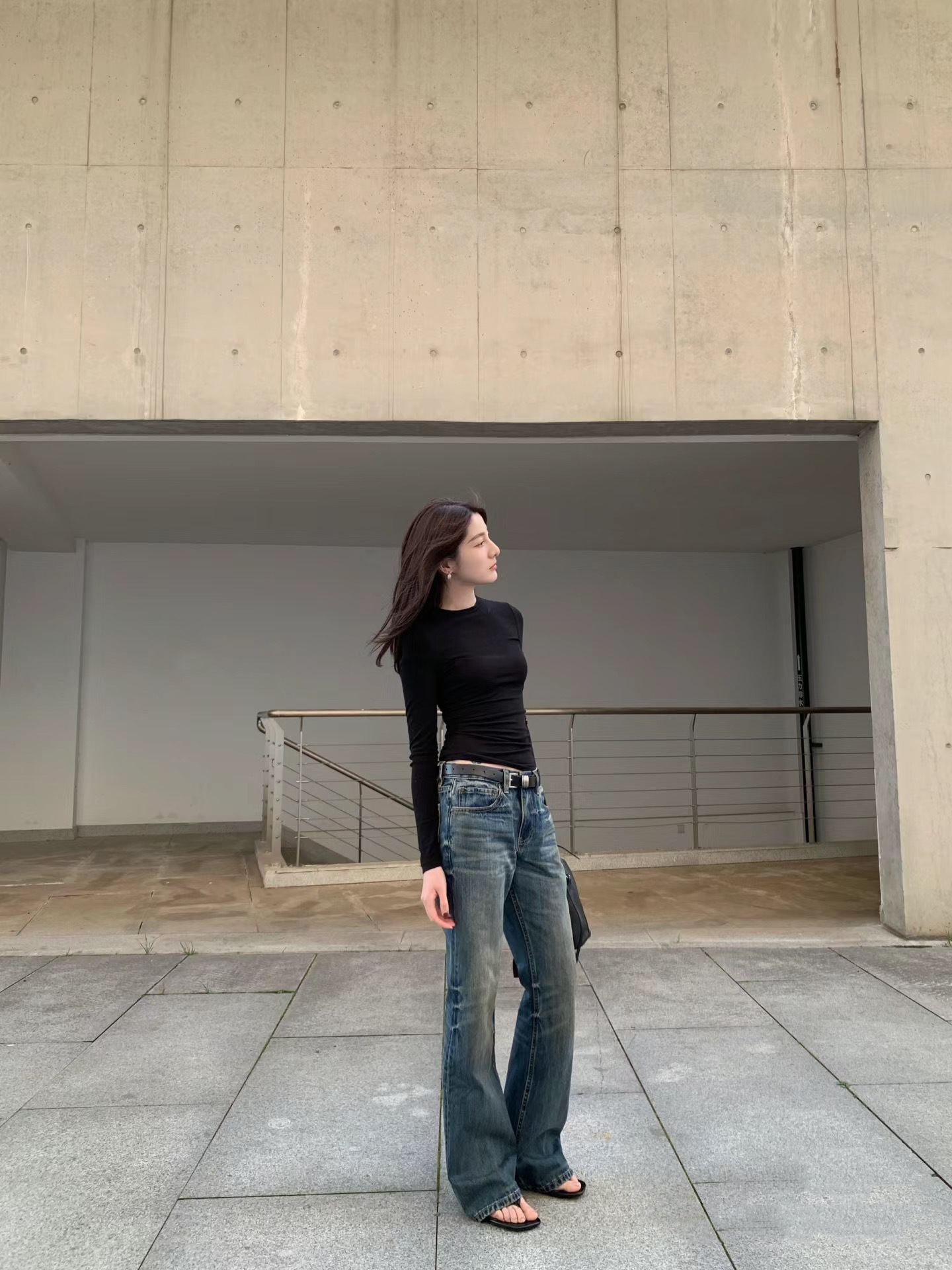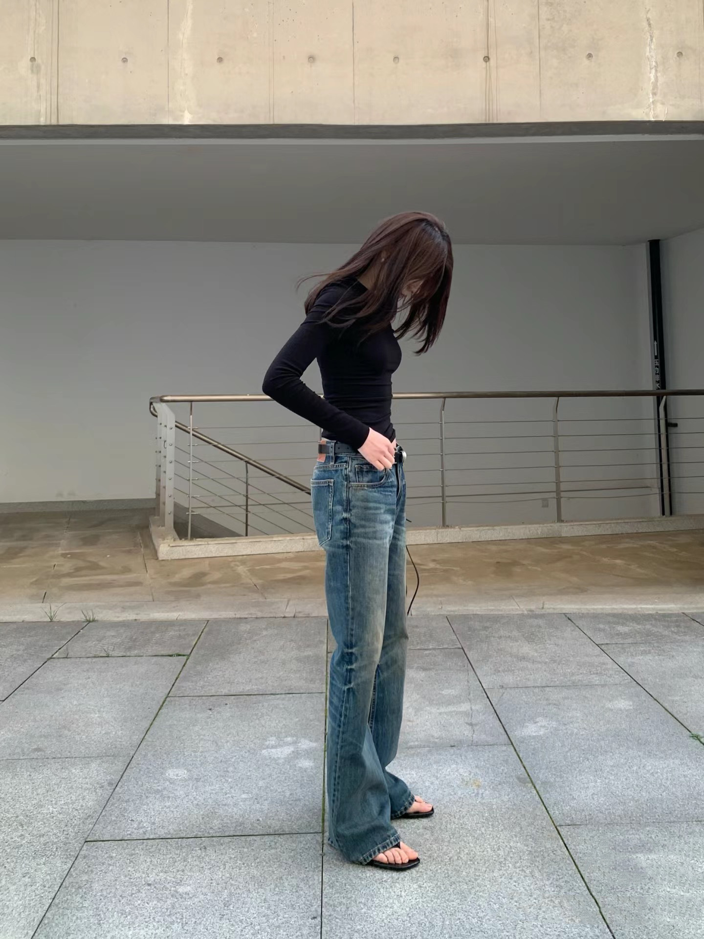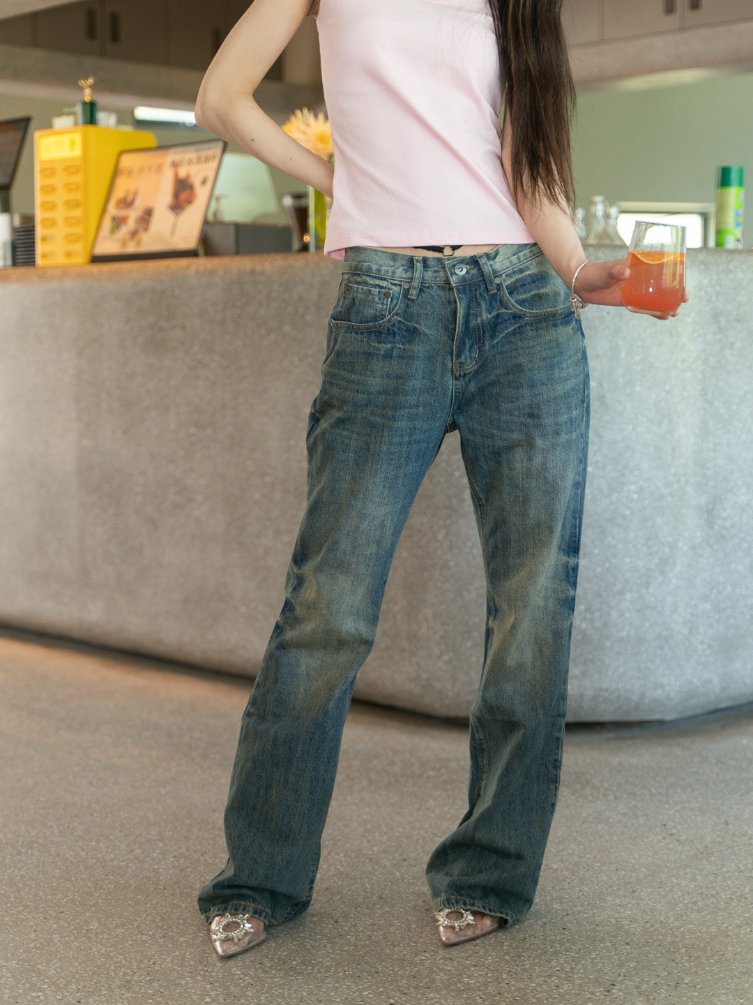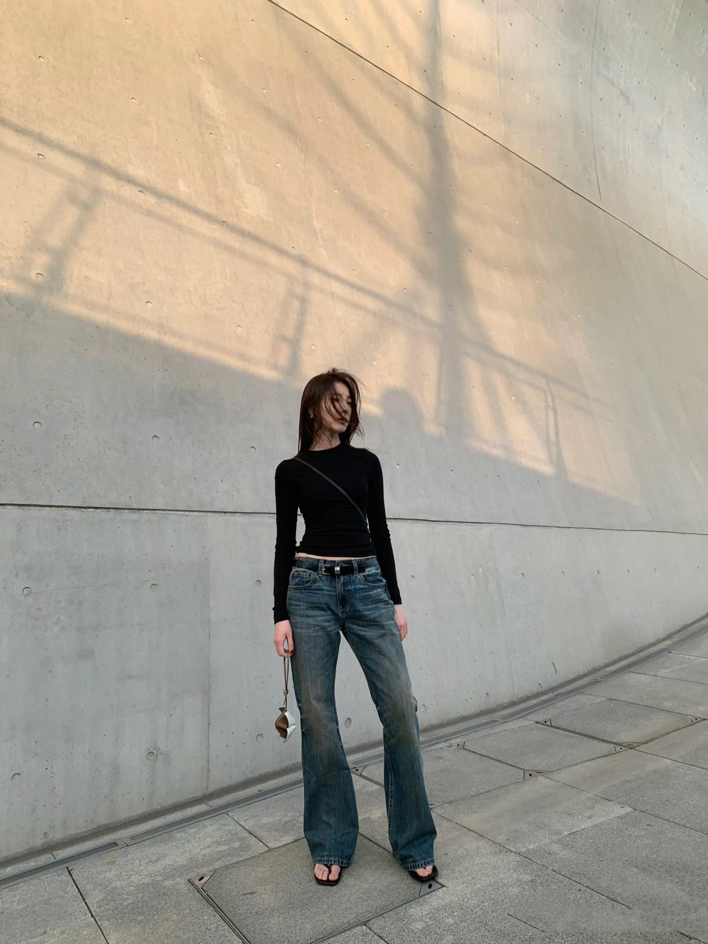 새로운 슬림 핏 슬리밍 씻은 오래된 더러운 닦아 다크 블루 낮은 허리 마이크로 램 청바지 여성용 바지 3057
