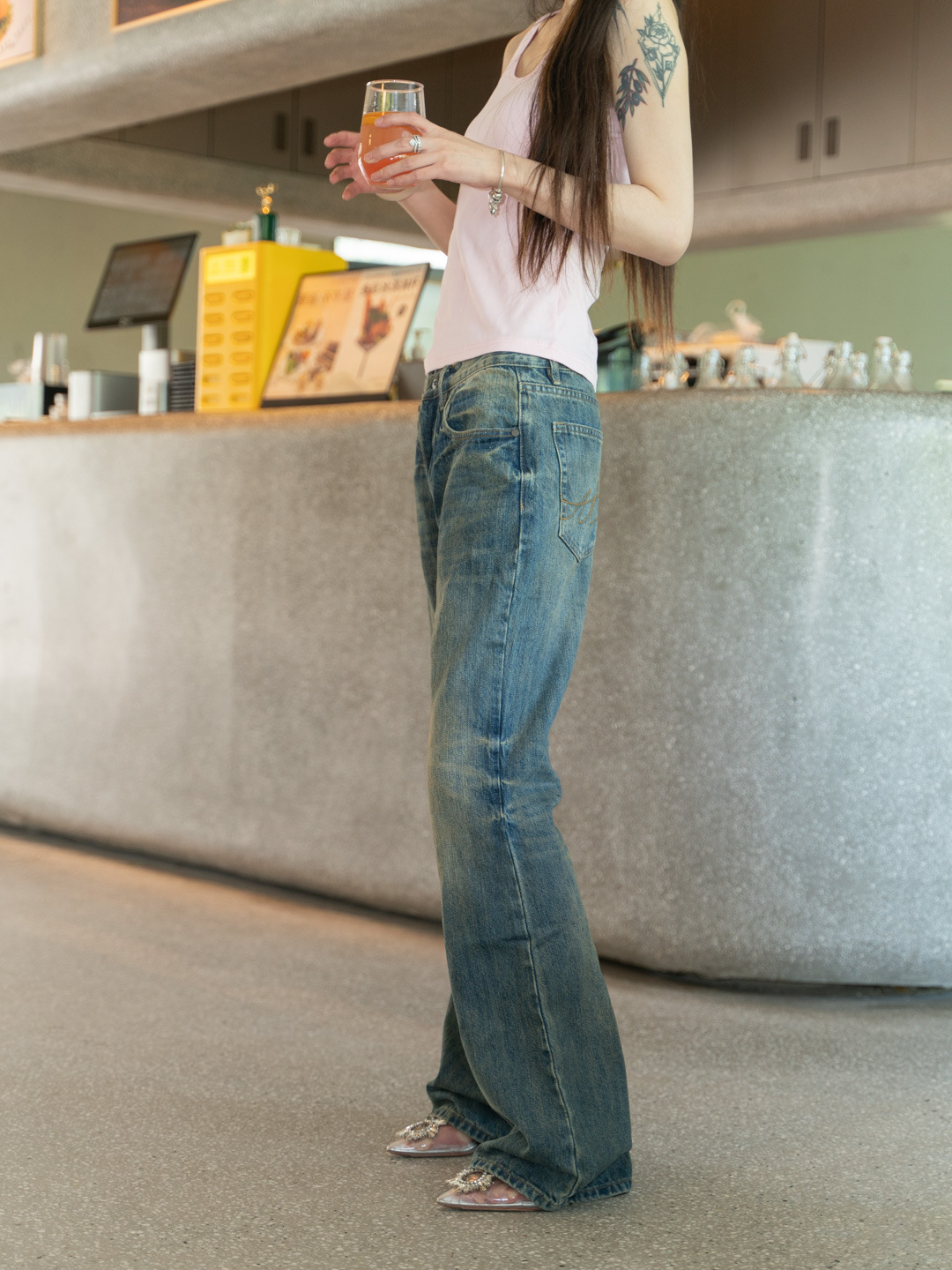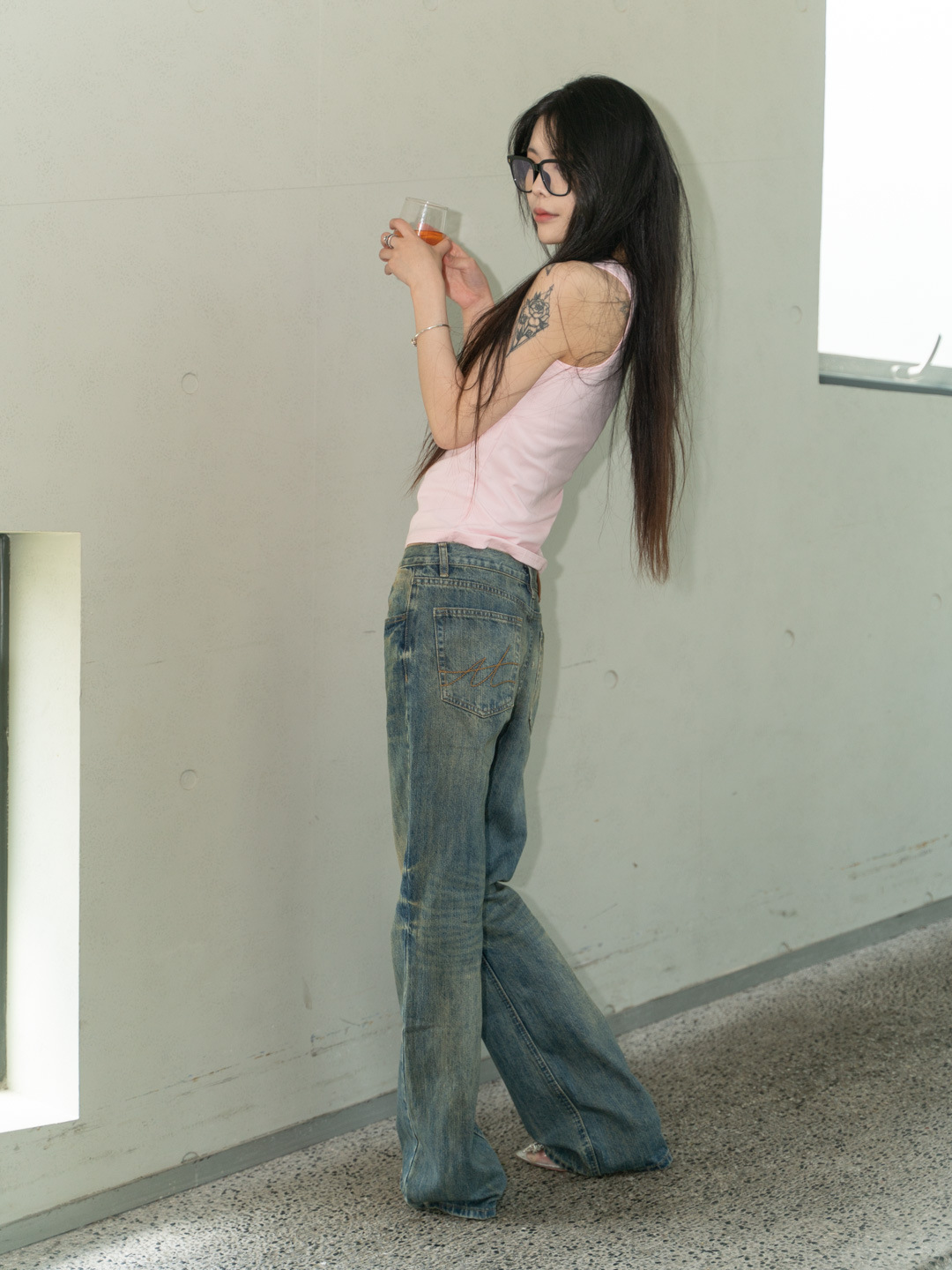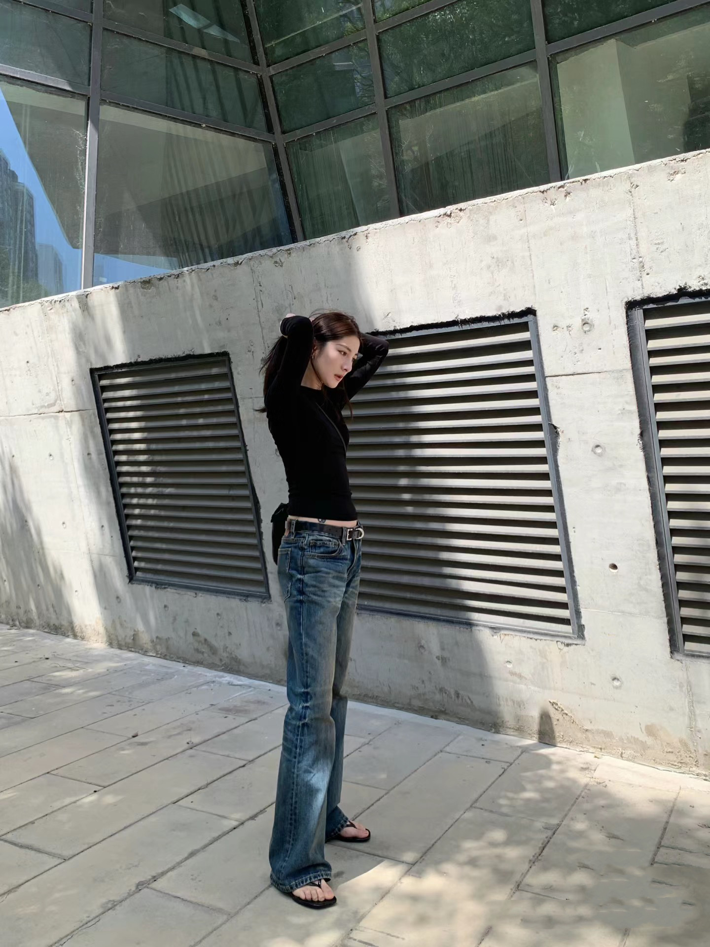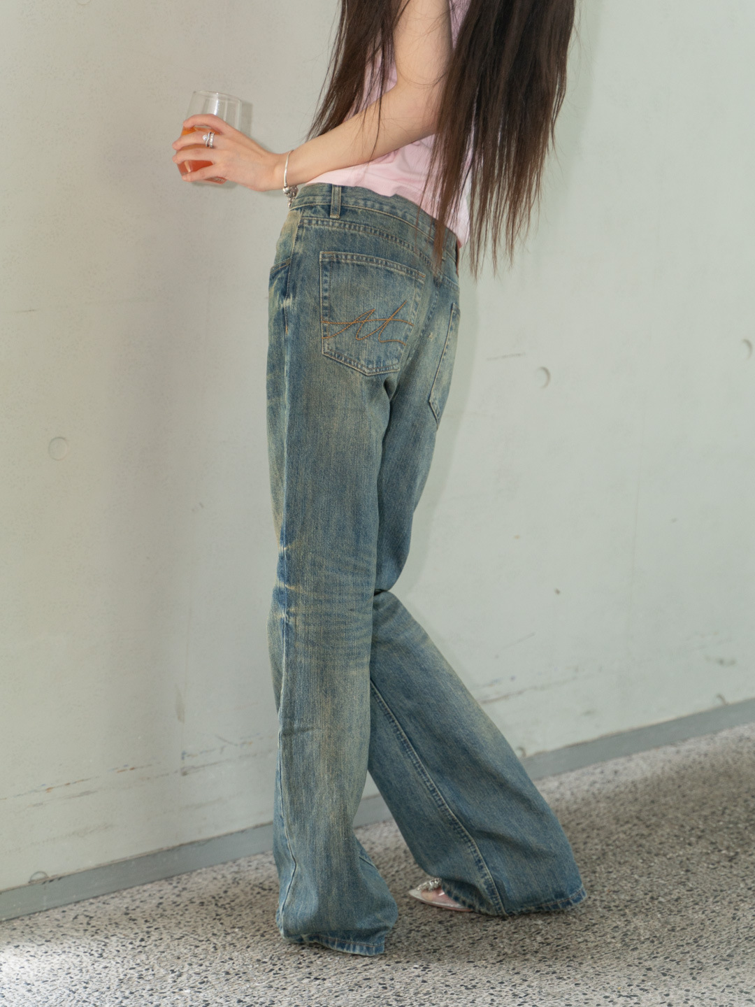 새로운 슬림 핏 슬리밍 씻은 오래된 더러운 닦아 다크 블루 낮은 허리 마이크로 램 청바지 여성용 바지 3057스토어 가기
