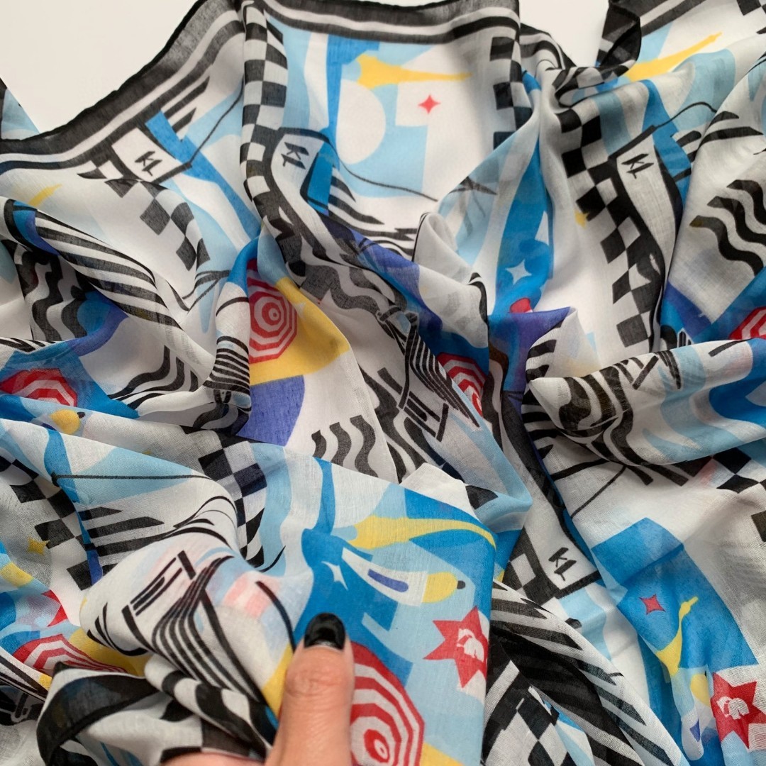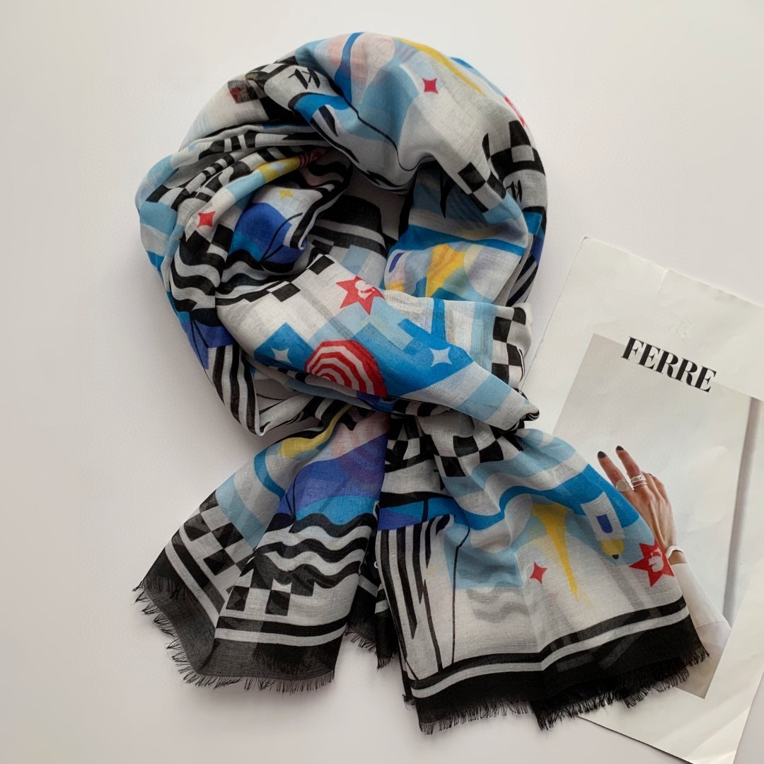 2024 새로운 수출 테일 스톡 라파예트 그래피티 기하학적 인쇄 스카프 긴 스카프 목도리