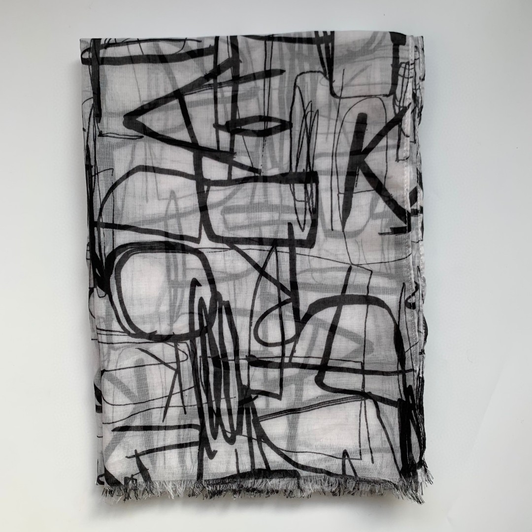 2024 새로운 수출 테일 스톡 라파예트 그래피티 기하학적 인쇄 스카프 긴 스카프 목도리스토어 가기