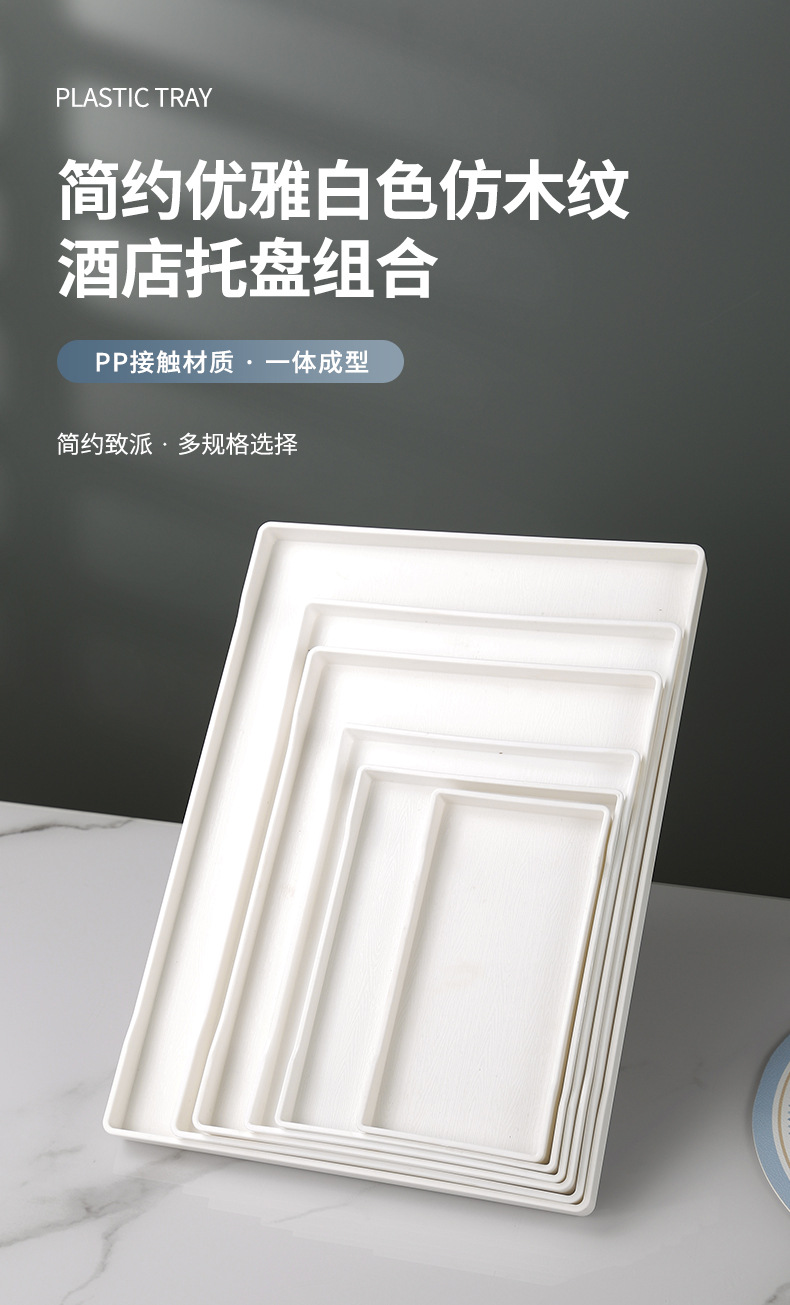 두꺼운 플라스틱 직사각형 트레이 호텔 방 보관 트레이 차 트레이 변기 상업용 모조 우드 그레인