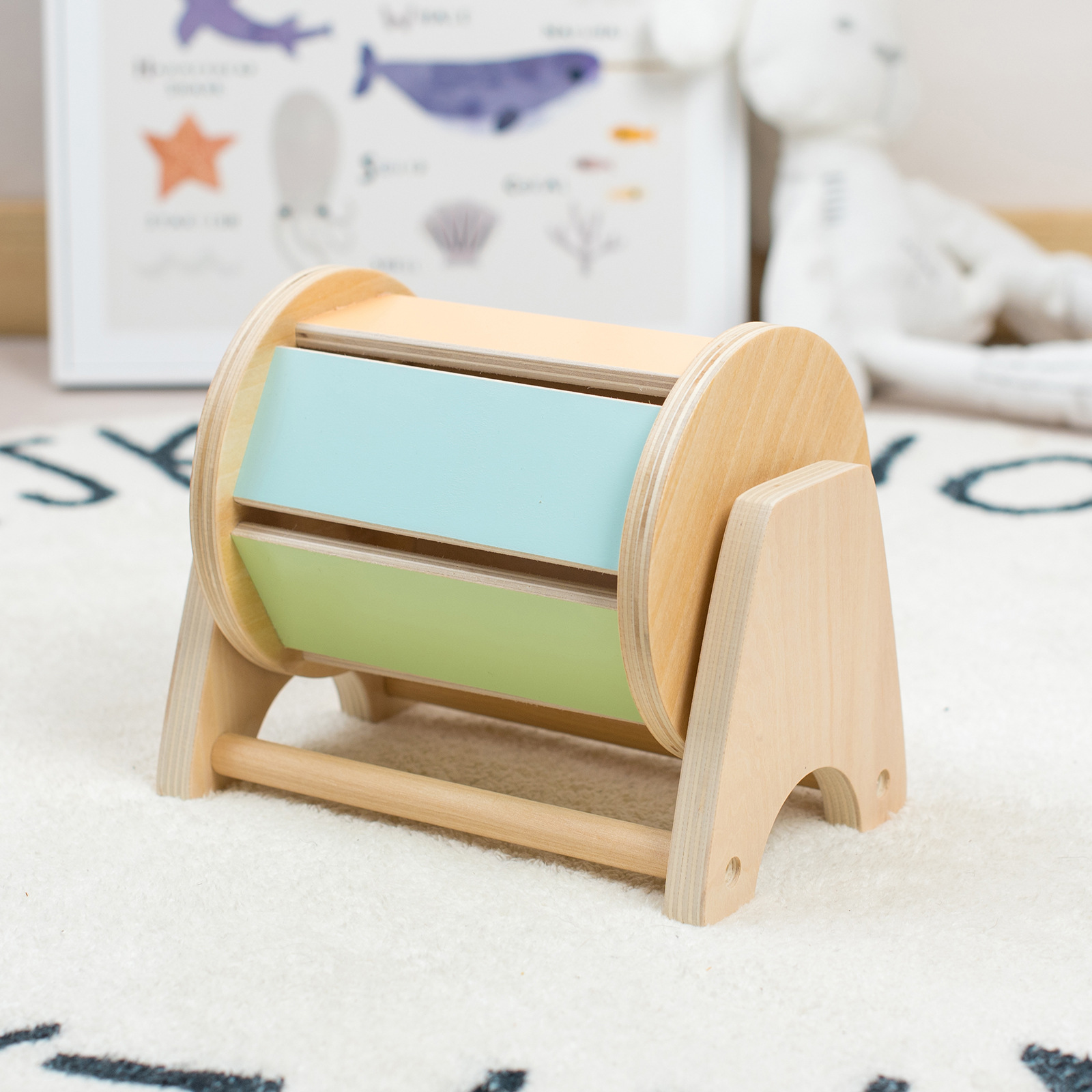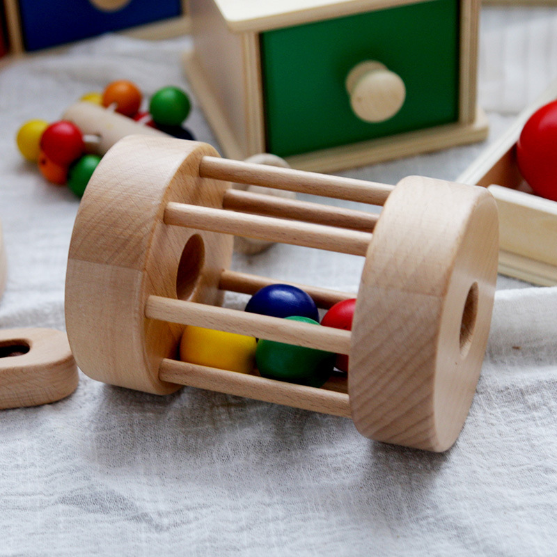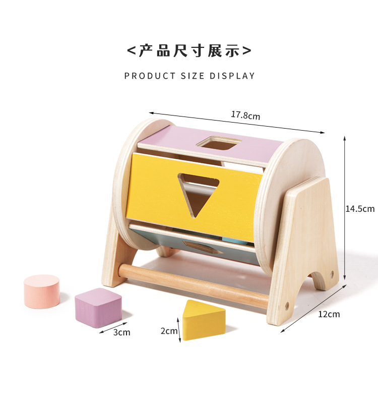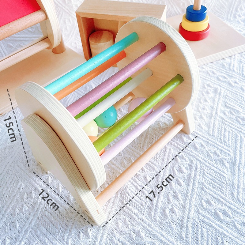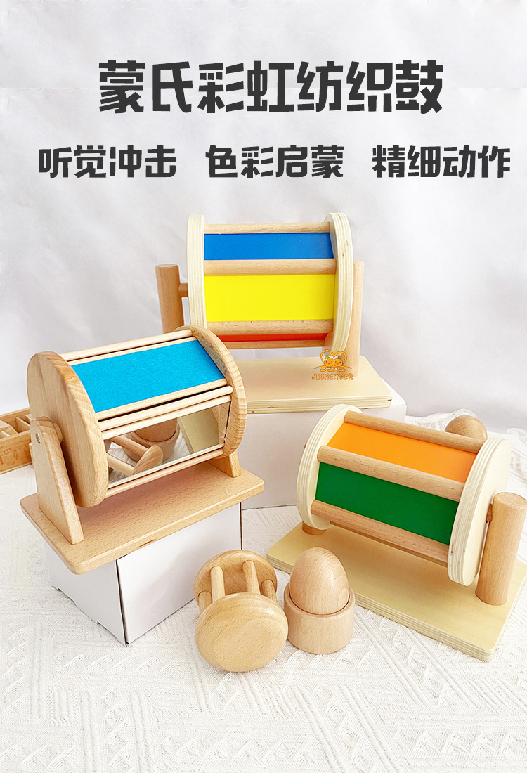 몬테소리 장난감 0-3 나무 섬유 드럼 아기 유아 교육 원조 유치원 솔리드 우드 레인보우 롤링 드럼 장난감
