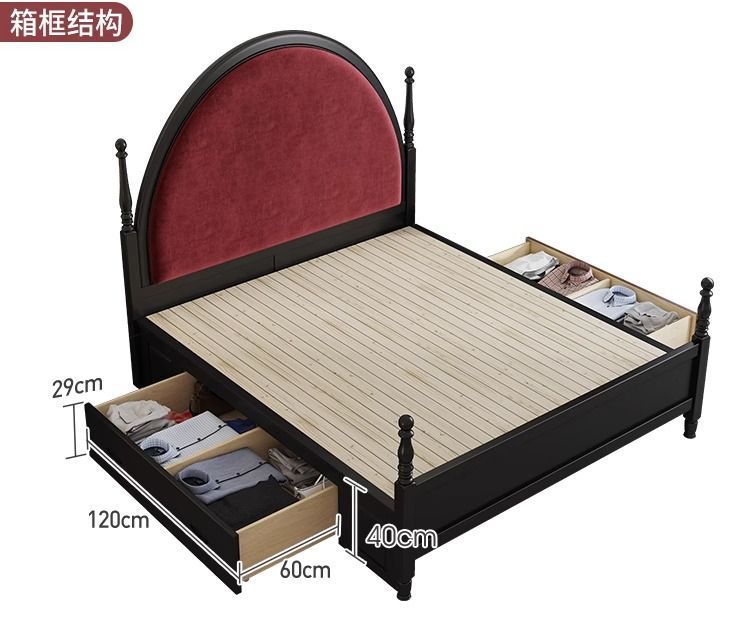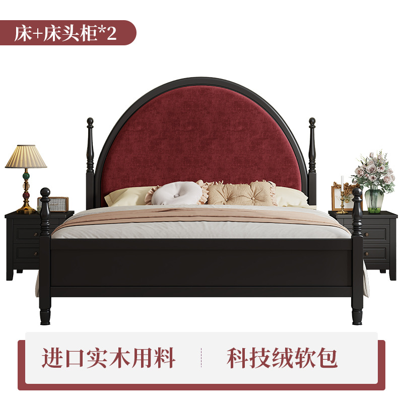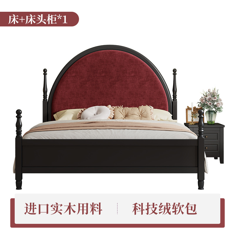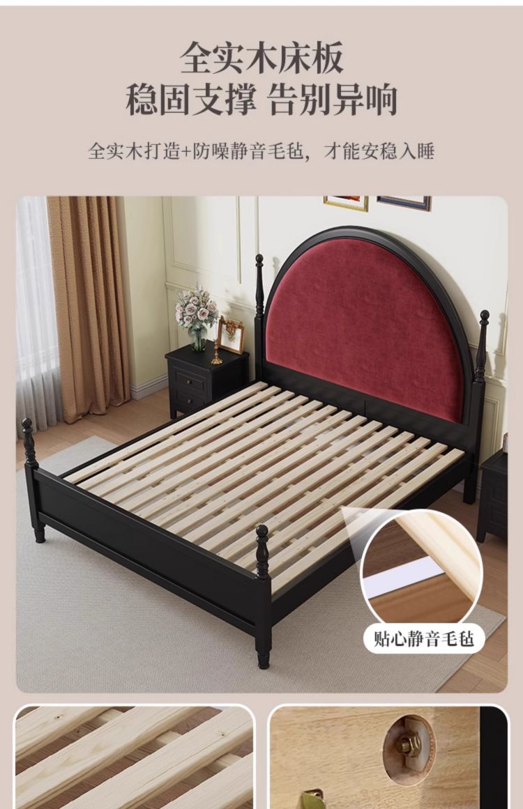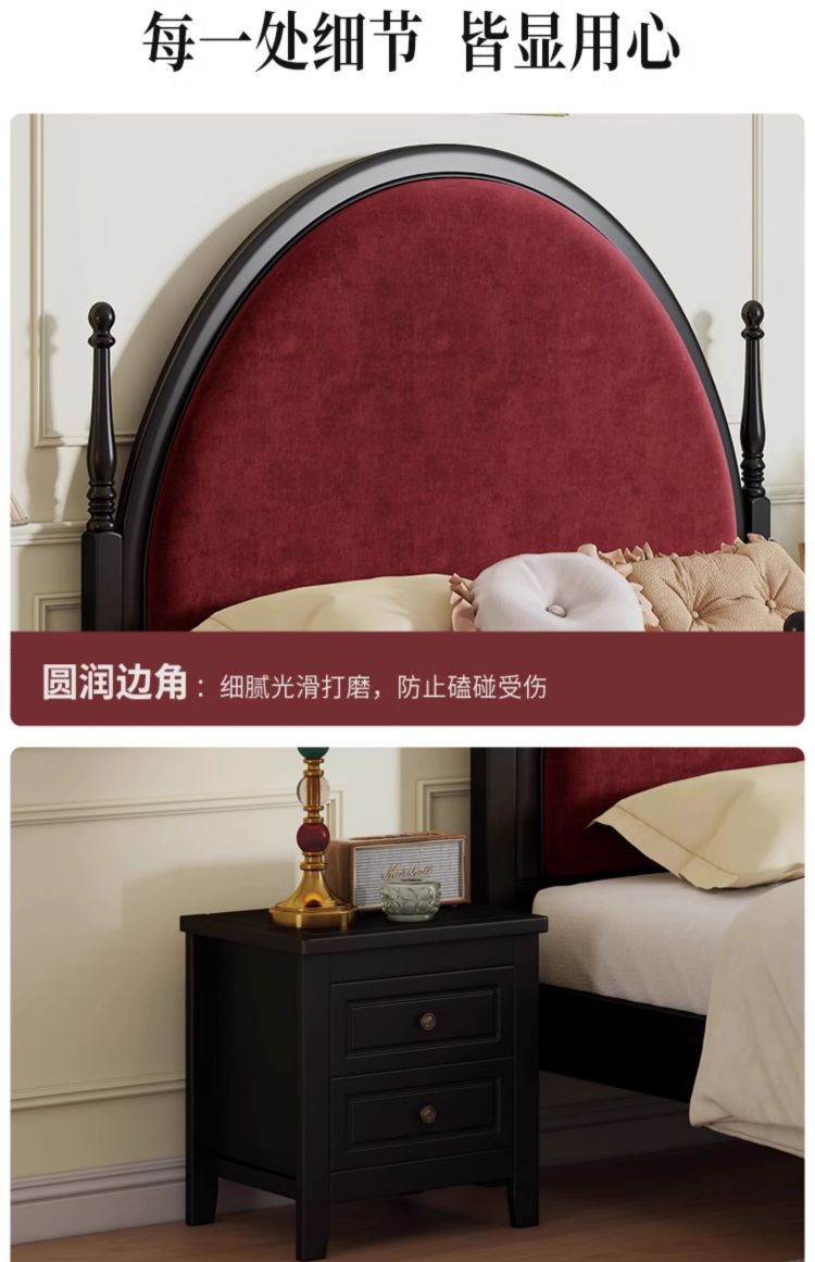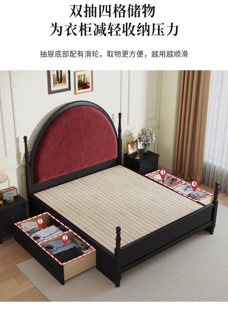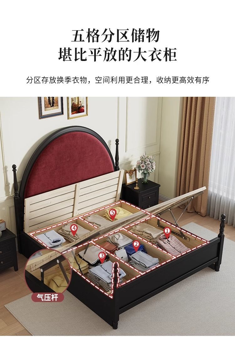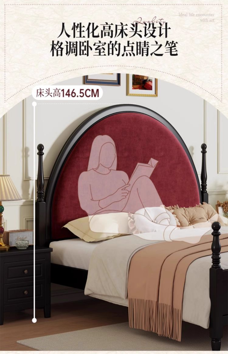 프랑스 복고풍 검은 단단한 나무 침대 마스터 침실 1.8m 더블 침대 미국 웨딩 침대 중간 높은 상자 저장 부드러운 가방 침대스토어 가기