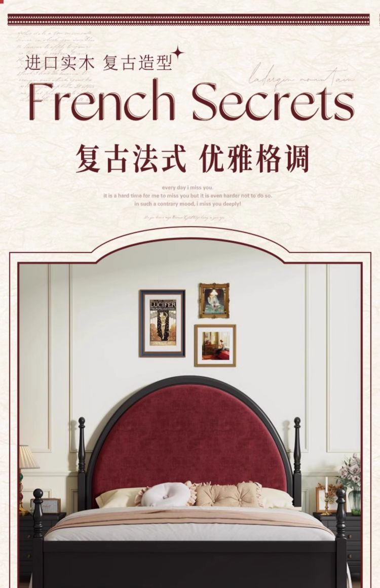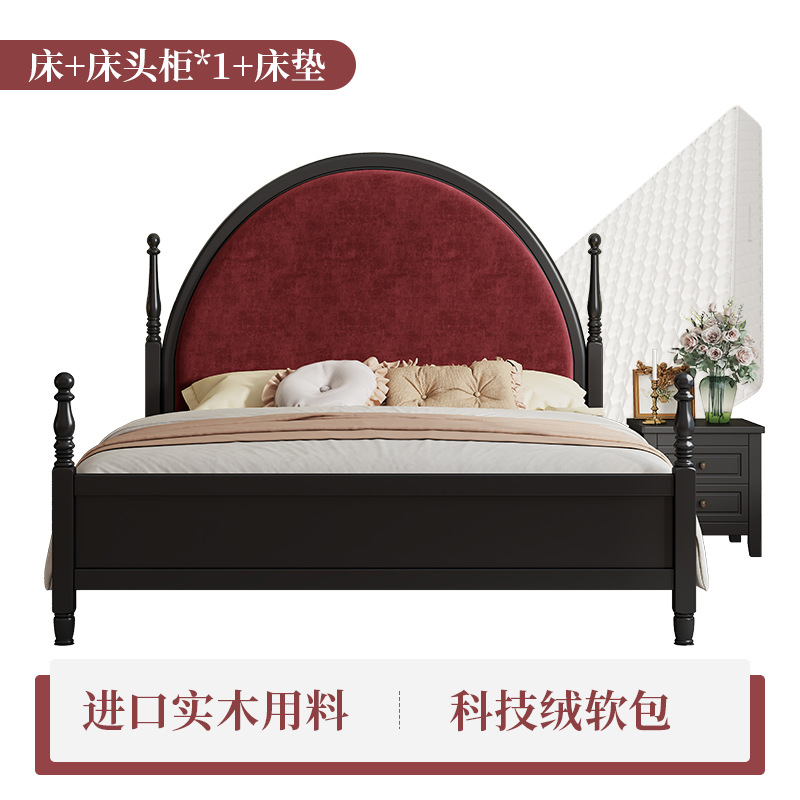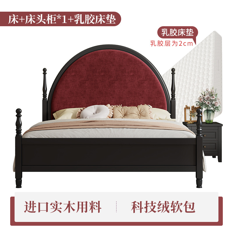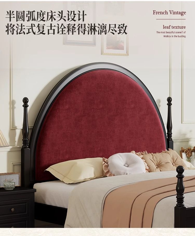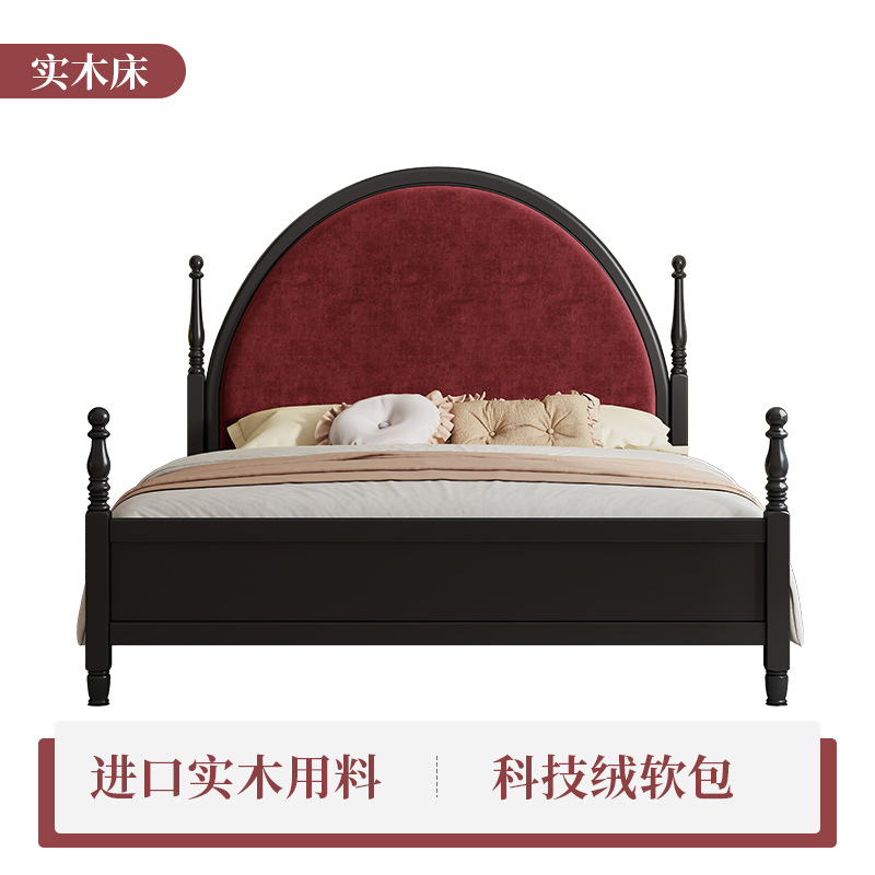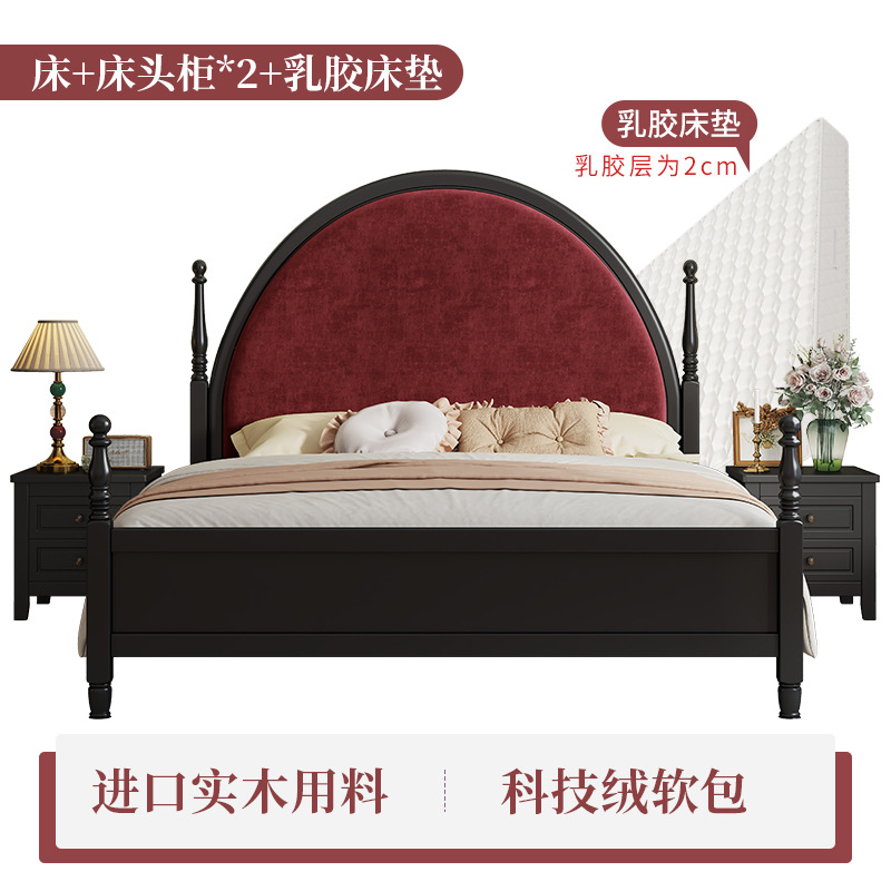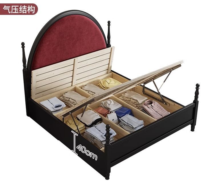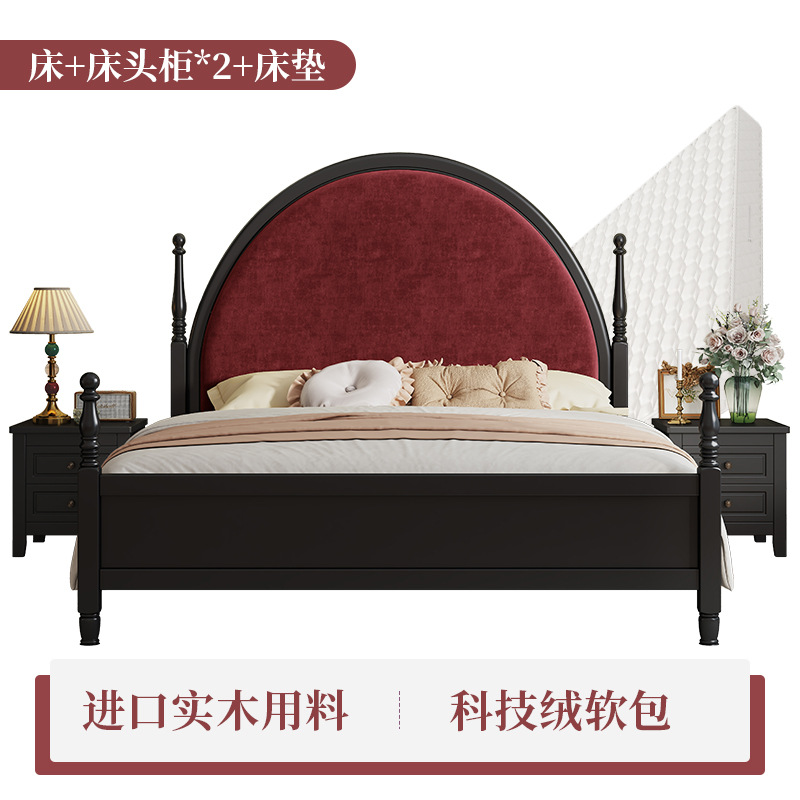 프랑스 복고풍 검은 단단한 나무 침대 마스터 침실 1.8m 더블 침대 미국 웨딩 침대 중간 높은 상자 저장 부드러운 가방 침대스토어 가기