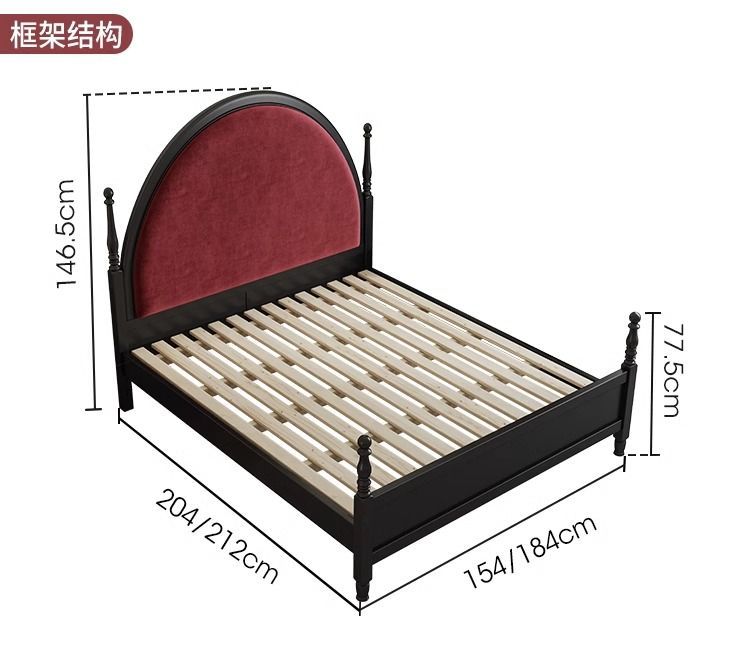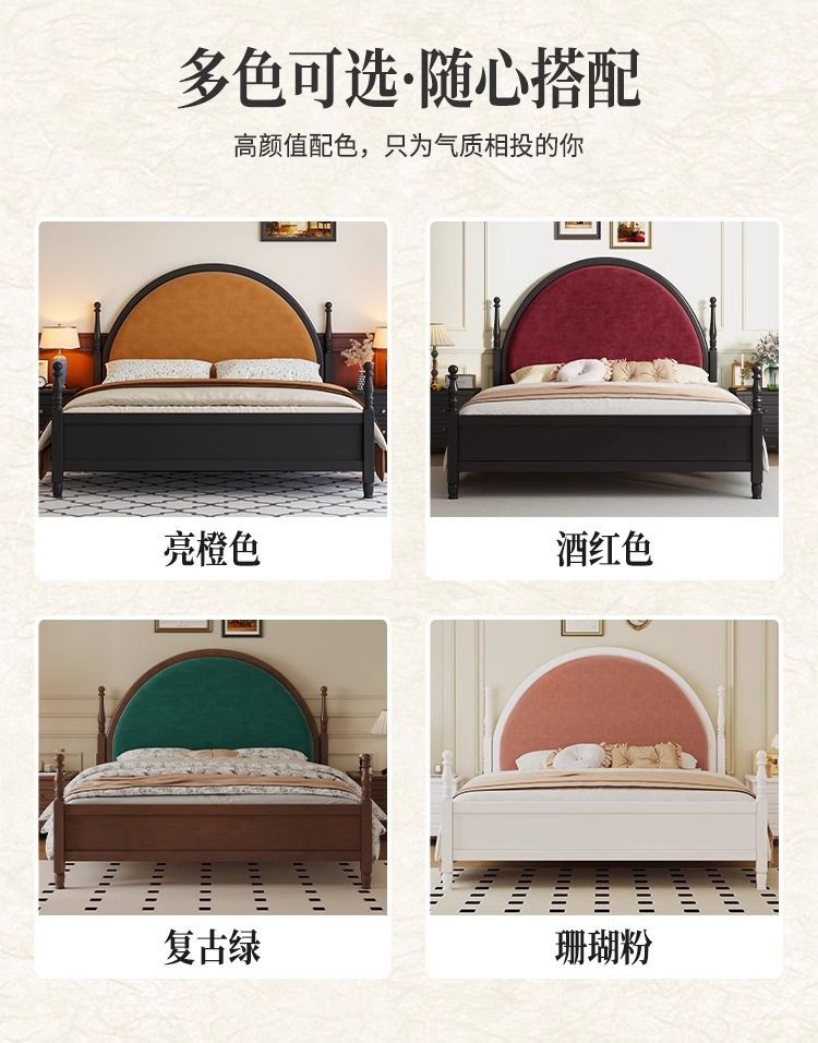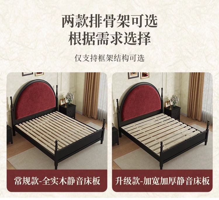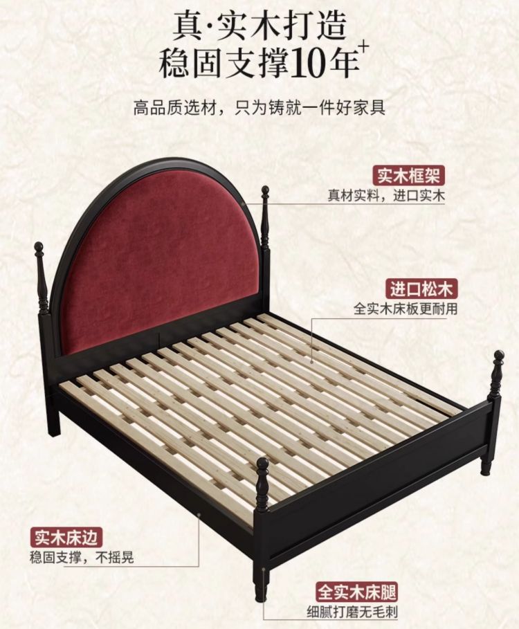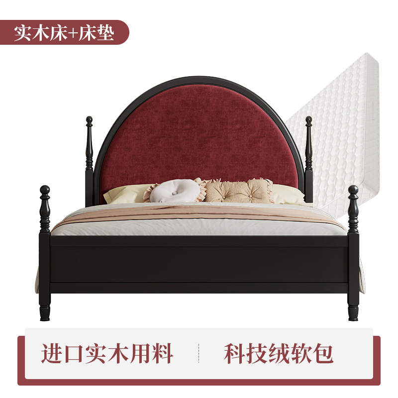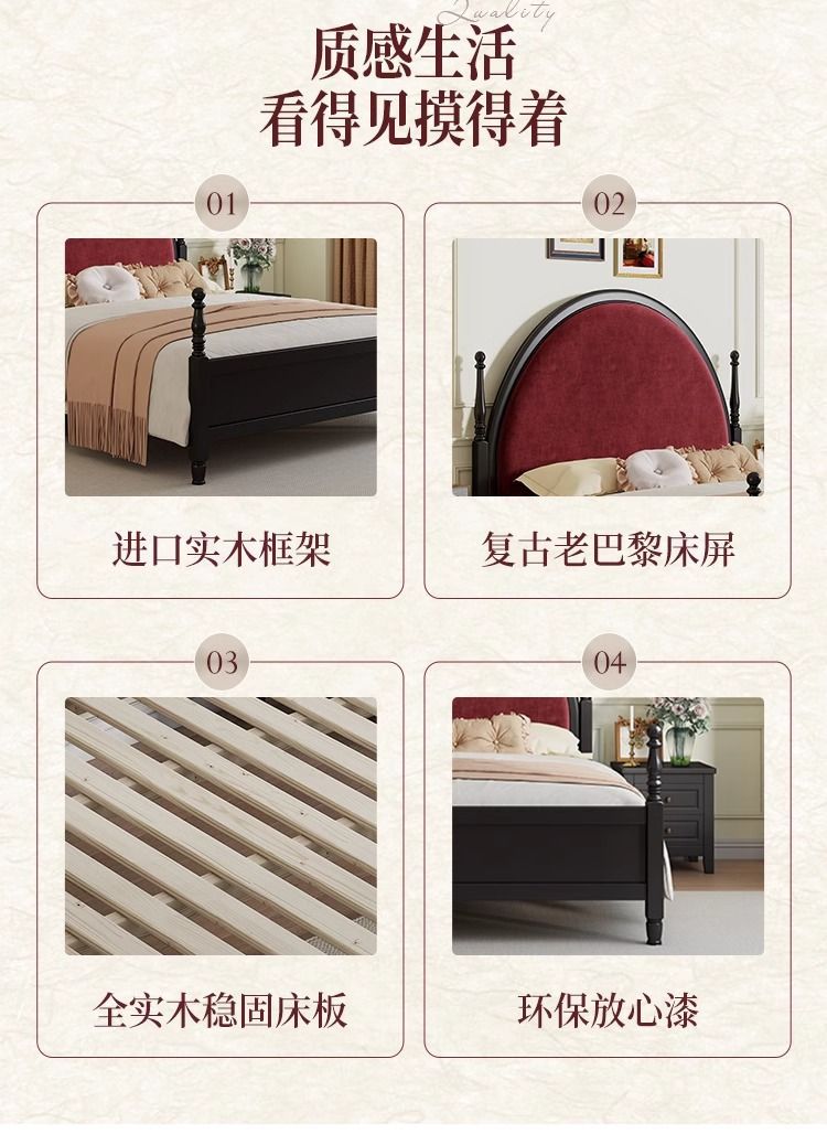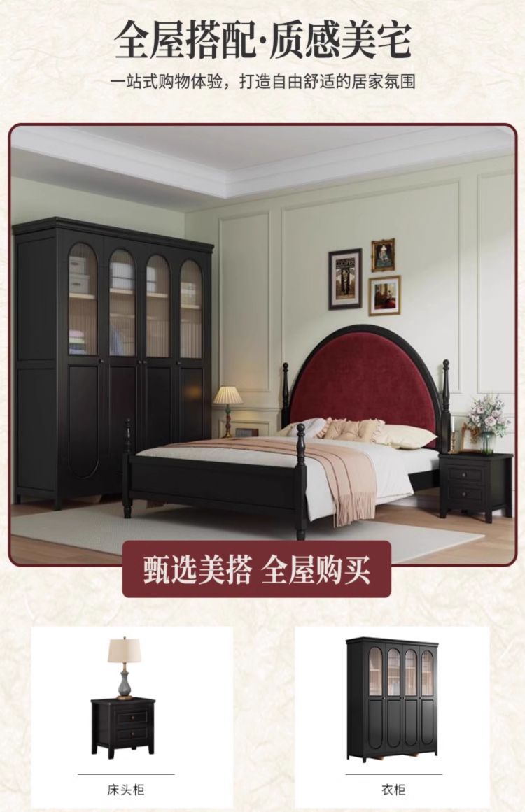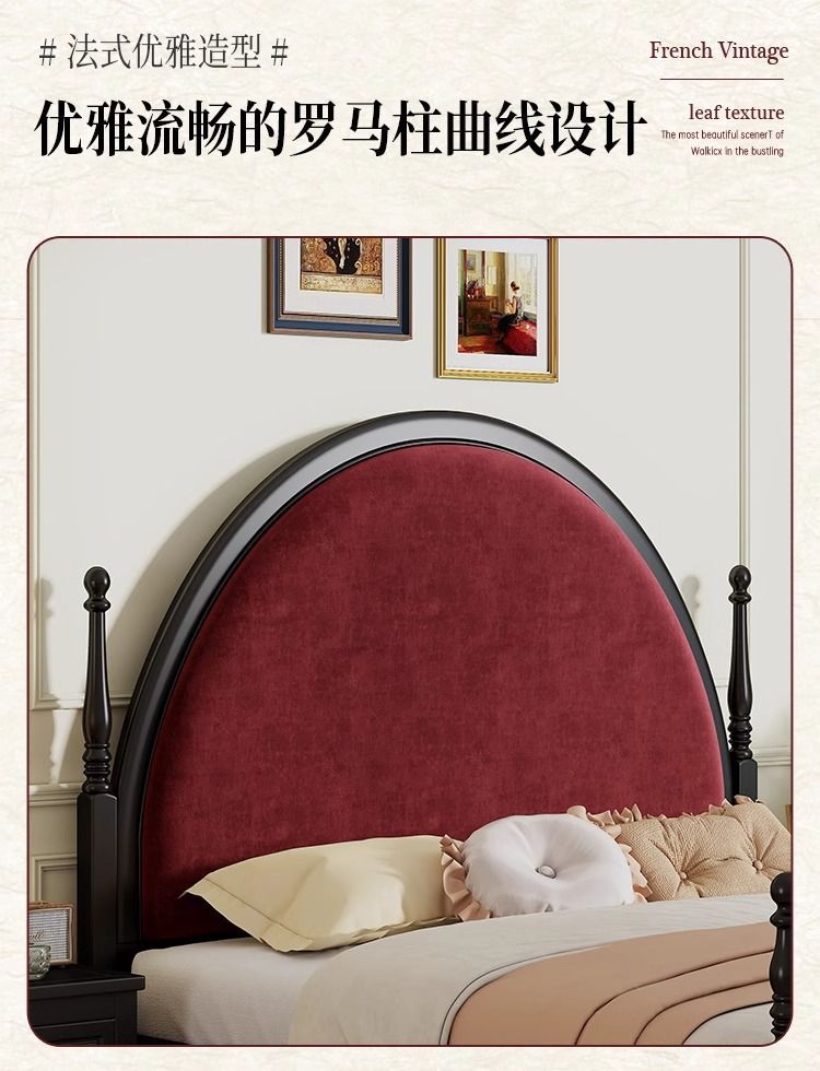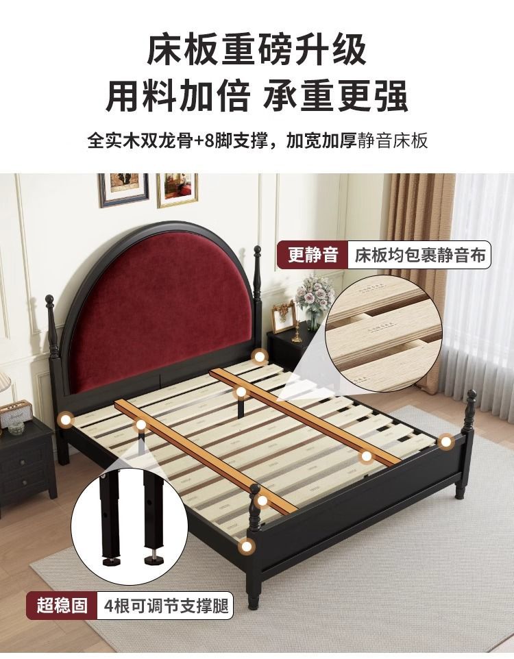 프랑스 복고풍 검은 단단한 나무 침대 마스터 침실 1.8m 더블 침대 미국 웨딩 침대 중간 높은 상자 저장 부드러운 가방 침대스토어 가기