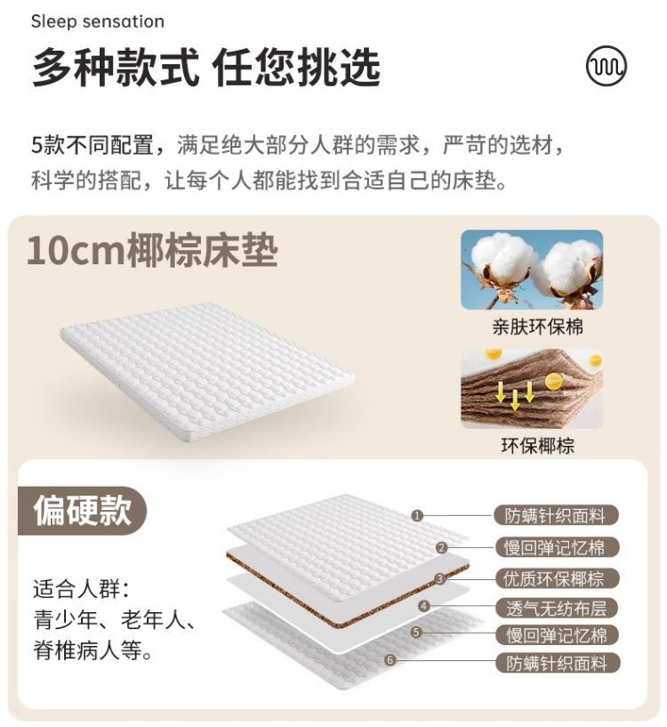 • 싱글 침대 코코넛 팜 매트리스 1 캐비닛