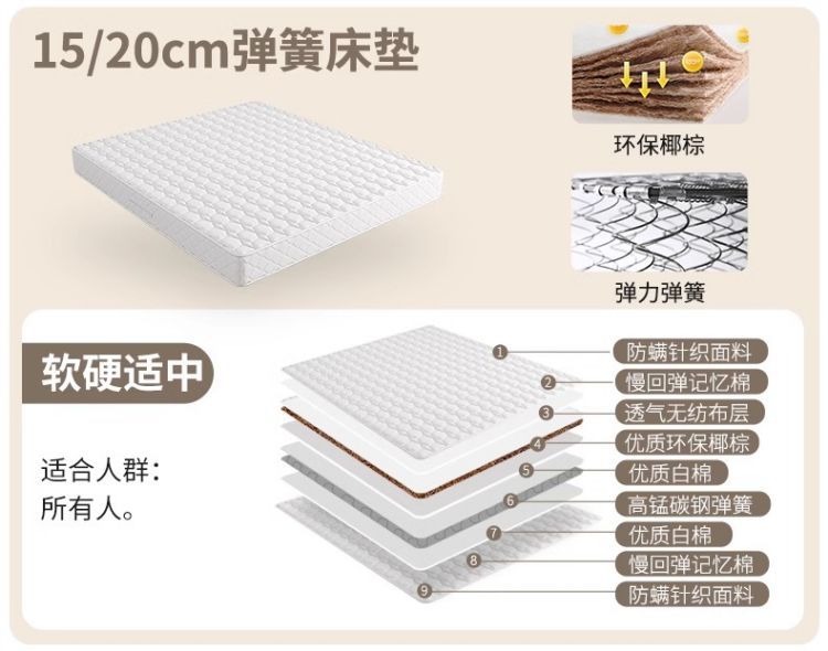 • 싱글 침대 코코넛 팜 매트리스 2 캐비닛