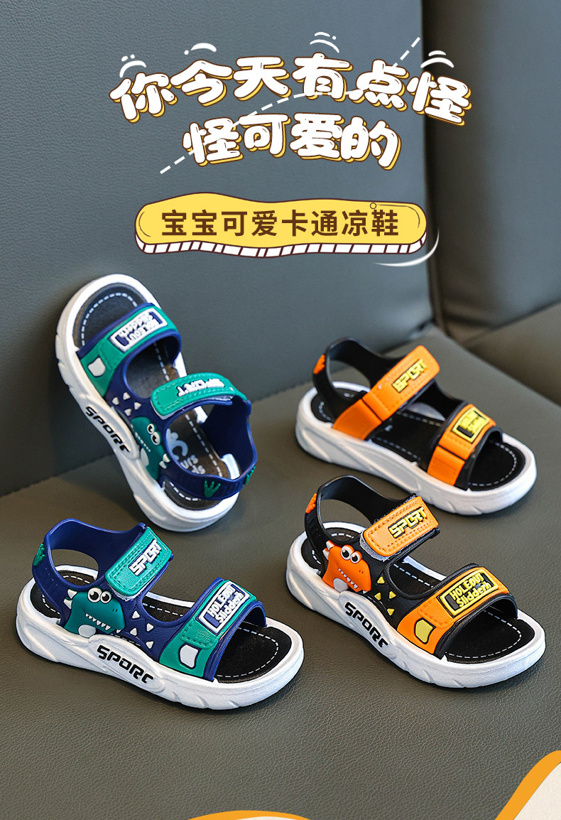 폭발성 대외 무역 어린이 샌들 여름 한국 스타일 귀여운 만화 소프트 솔 외부 소년 소녀를위한 미끄럼 방지 벨크로 샌들