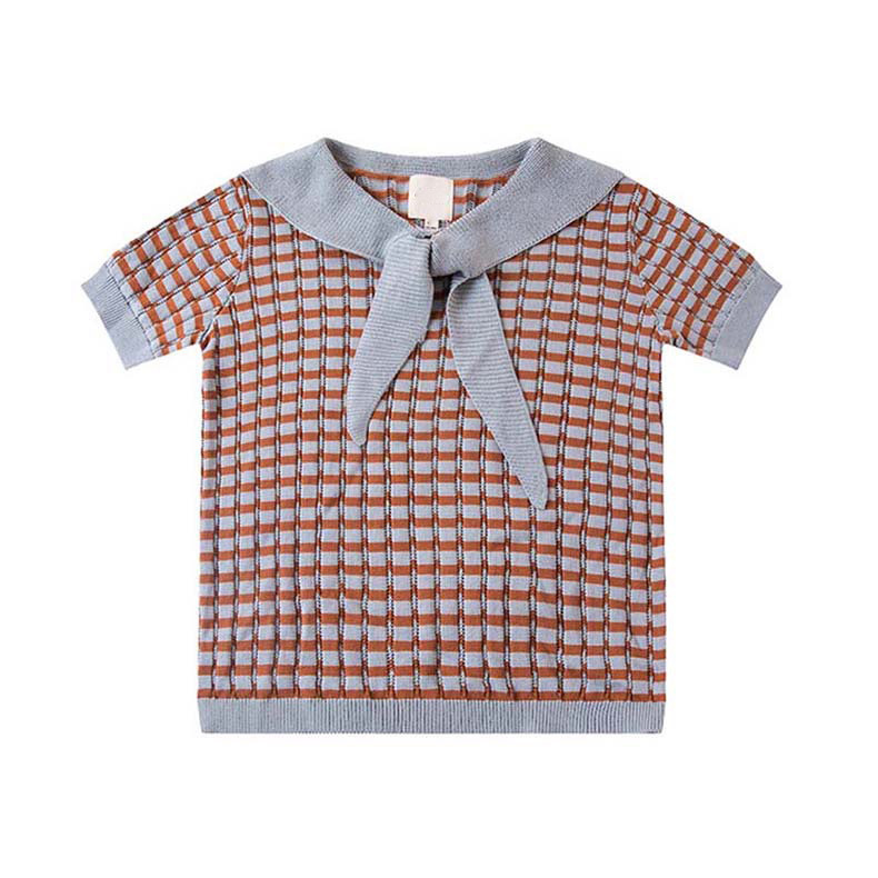 니트 플래닛 보우 타이 탑 암모늄 빈 플레어 바지 소녀 정장 여름 얇은 모달 코튼 스웨터스토어 가기