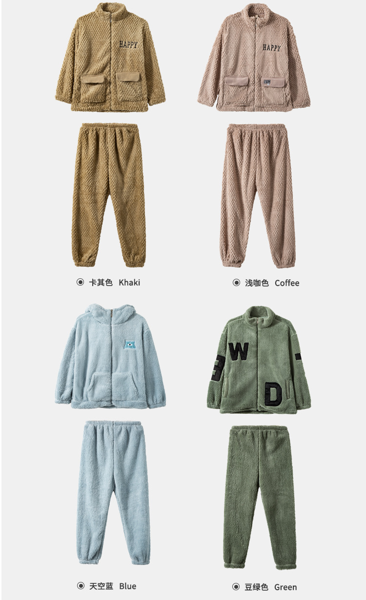 잠옷 남자의 가을과 겨울 새로운 플란넬 세트 겨울 두꺼운 기모 따뜻한 산호 양털 홈 옷