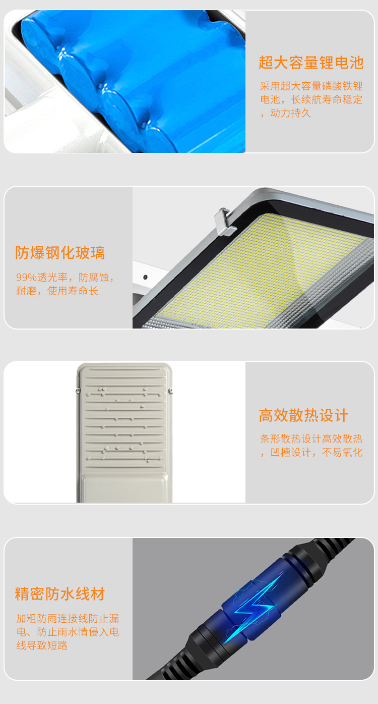 태양 가로등 야외 방수 고출력 폭발성 새로운 시골 프로젝트 높은 극 LED 조명 유도 가로등 머리