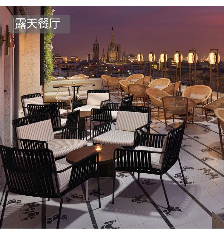 야외 등나무 테이블과 의자 레저용 야외 식탁과 의자 3종 세트 호텔 안뜰 정원 테라스 방수 및 자외선 차단 조합