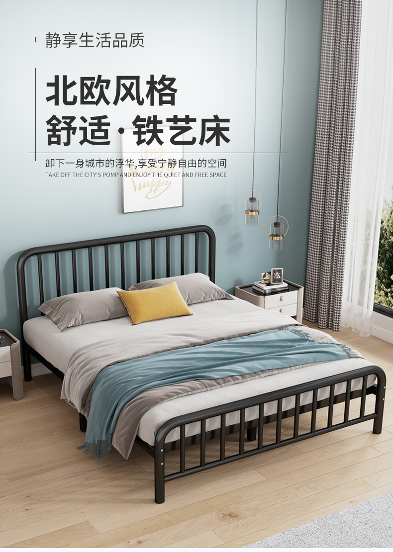 G $ L 아이언 침대 더블 침대 1.8 미터 유럽 간단한 1.5 강화 패딩 싱글 아이언 침대 대여 룸 아이언 침대스토어 가기
