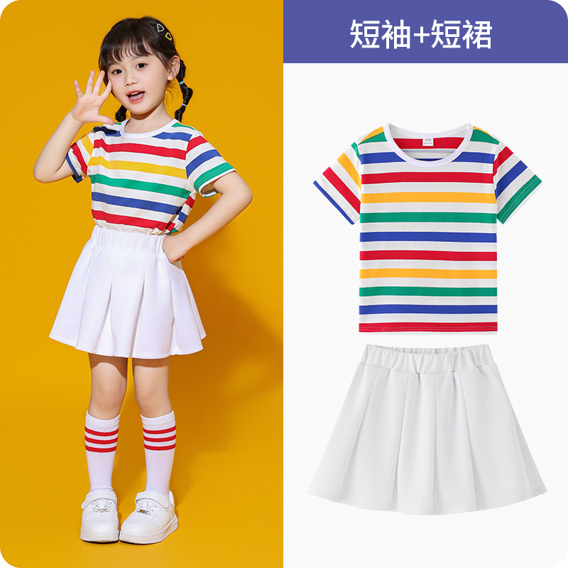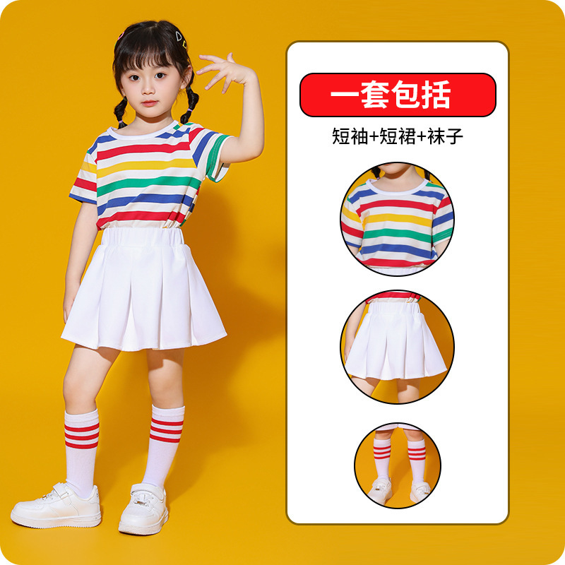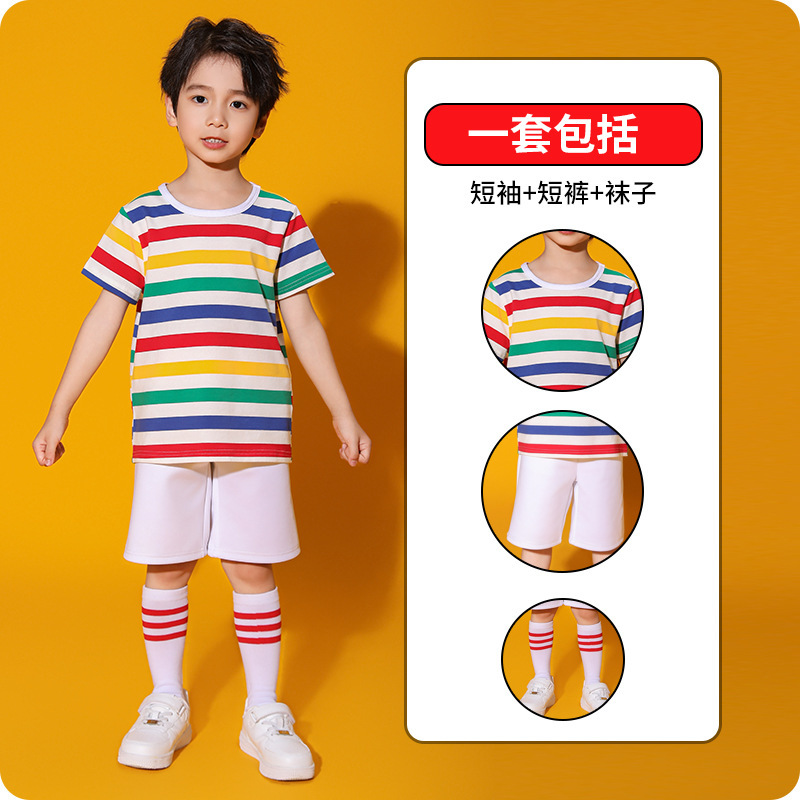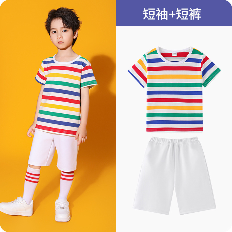 어린이 하늘 청소년 활력 의상 무지개 어린이 줄무늬 티셔츠 컬러 소년 소녀 활동 의상스토어 가기