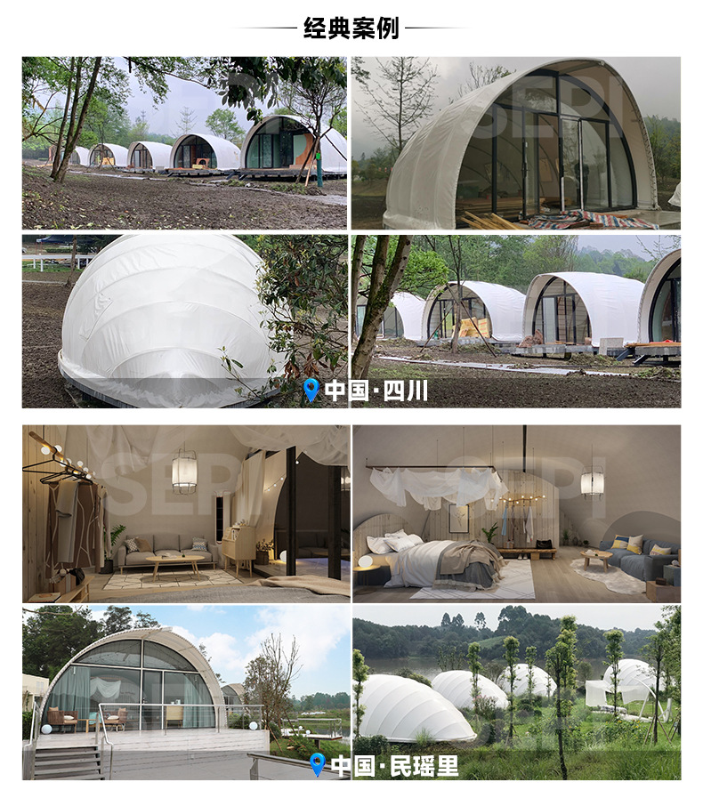 쉘 텐트 호텔, 태풍 방지 철골 구조 + PVDF 필름 소재, 고급 야외 럭셔리 빌라, 방음 및 단열 캠핑