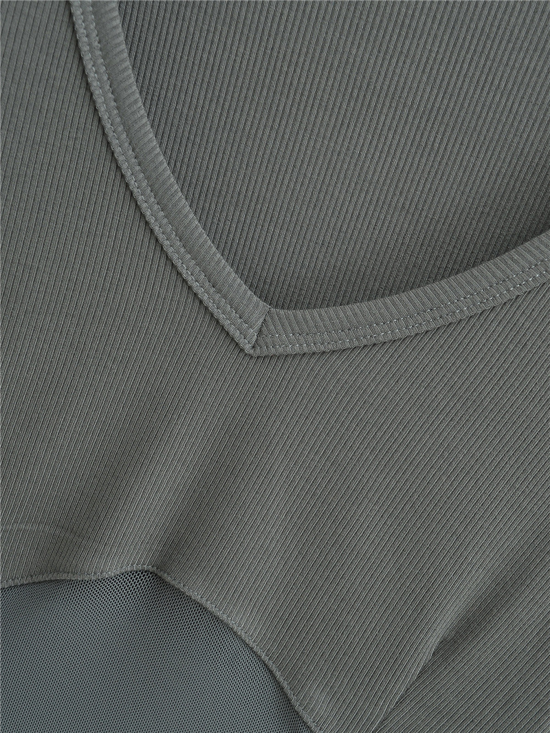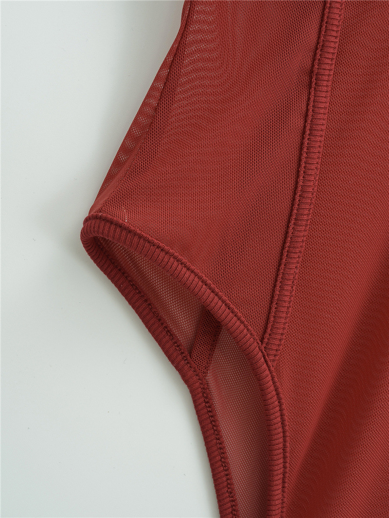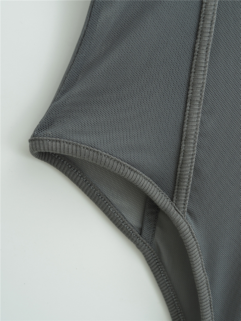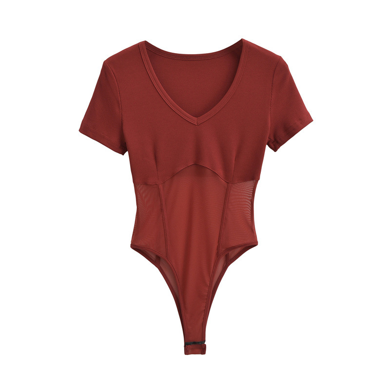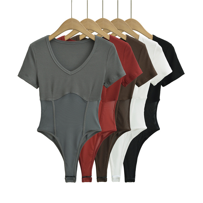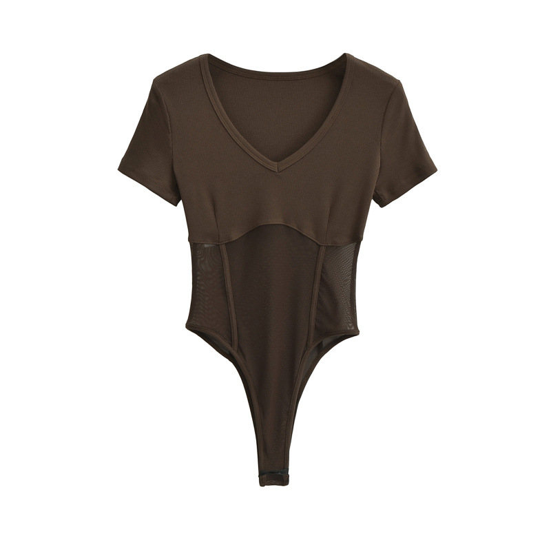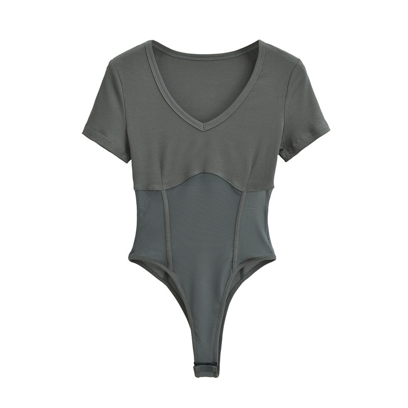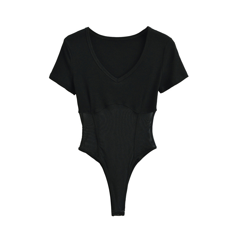 유럽과 미국 스타일의 디자인 센스 메쉬 원피스 스티칭 핫 소녀 반팔 원피스 티셔츠 여름 새로운 슬림 핏 섹시한 탑