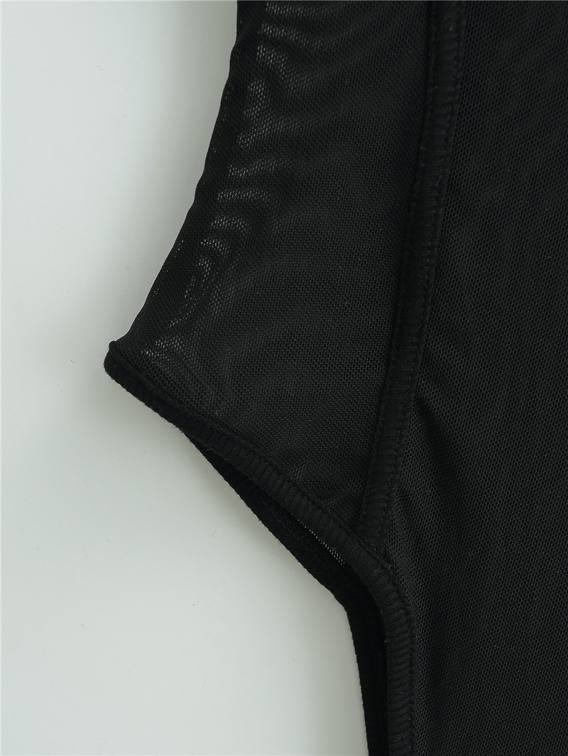 유럽과 미국 스타일의 디자인 센스 메쉬 원피스 스티칭 핫 소녀 반팔 원피스 티셔츠 여름 새로운 슬림 핏 섹시한 탑스토어 가기