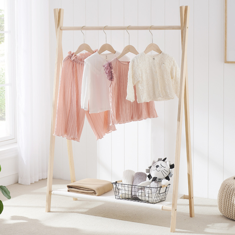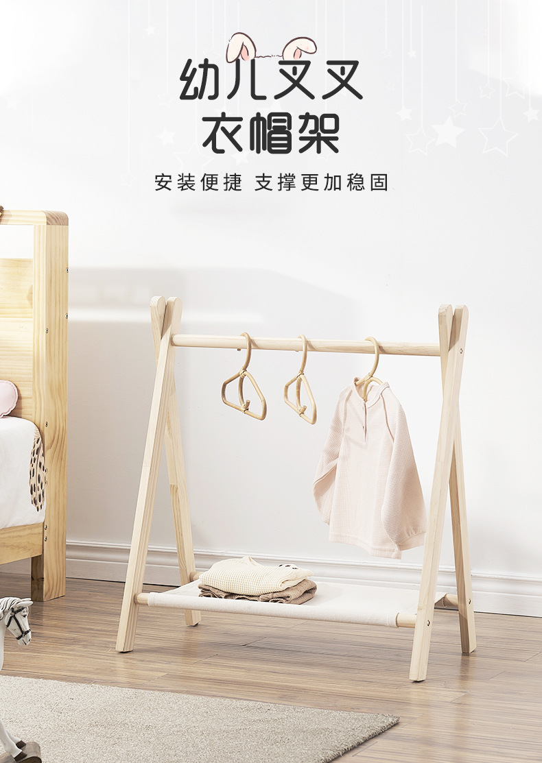 K $ H 침실 아기 옷걸이 가정용 아기 바닥 걸이 단단한 나무 어린이 저장 랙 유치원 코트 랙