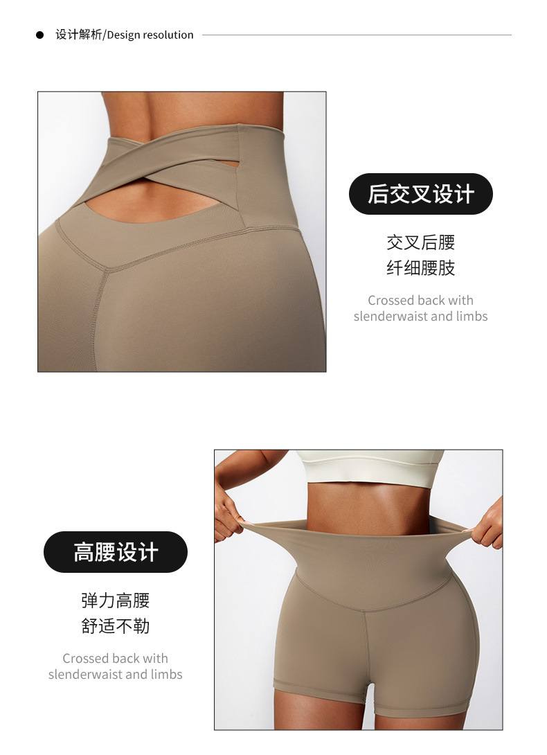 2025 여름 누드 느낌 요가 반바지 하이웨이스트 힙업 크로스백 허리 디자인 사이클링 피트니스 스포츠 3부 반바지