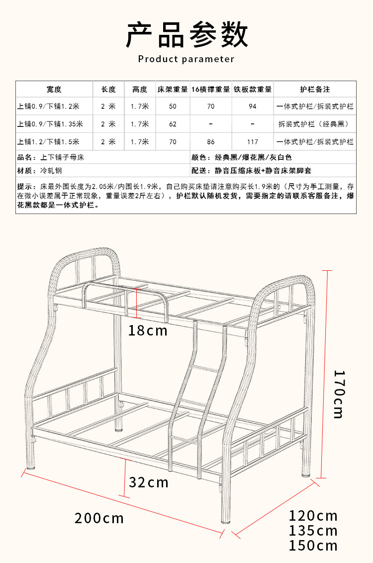 • ☆★매트 블랙 상부 침대 폭 09m / 하부 침대 폭 135m (강화 및 두꺼운 버전)☆★