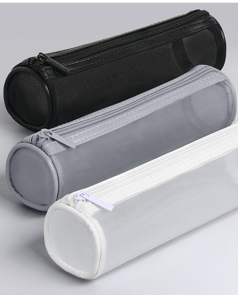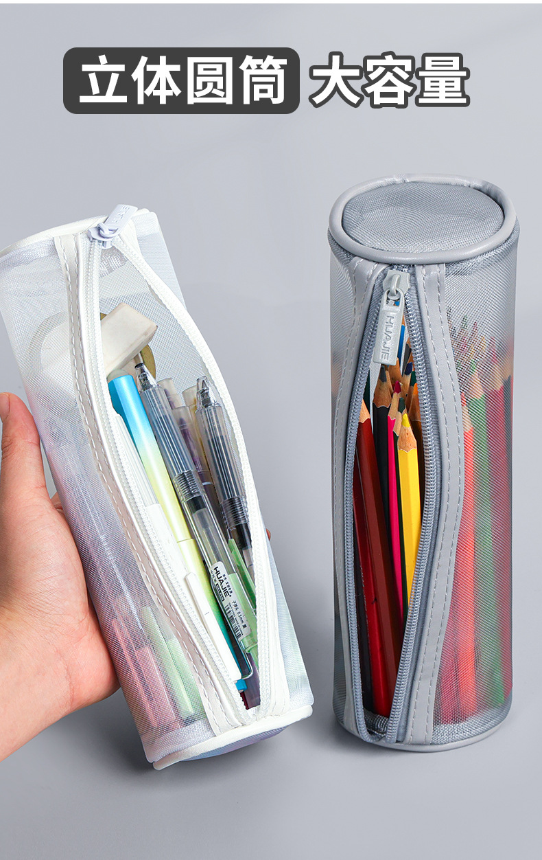 Huajie 제조 업체 도매 원통형 메쉬 연필 케이스 대용량 데스크탑 저장 가방 투명 연필 케이스는 시험실에 들어갈 수 있습니다
