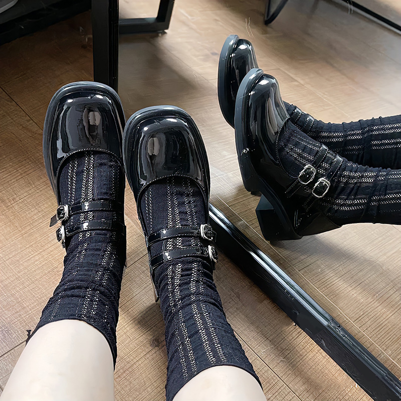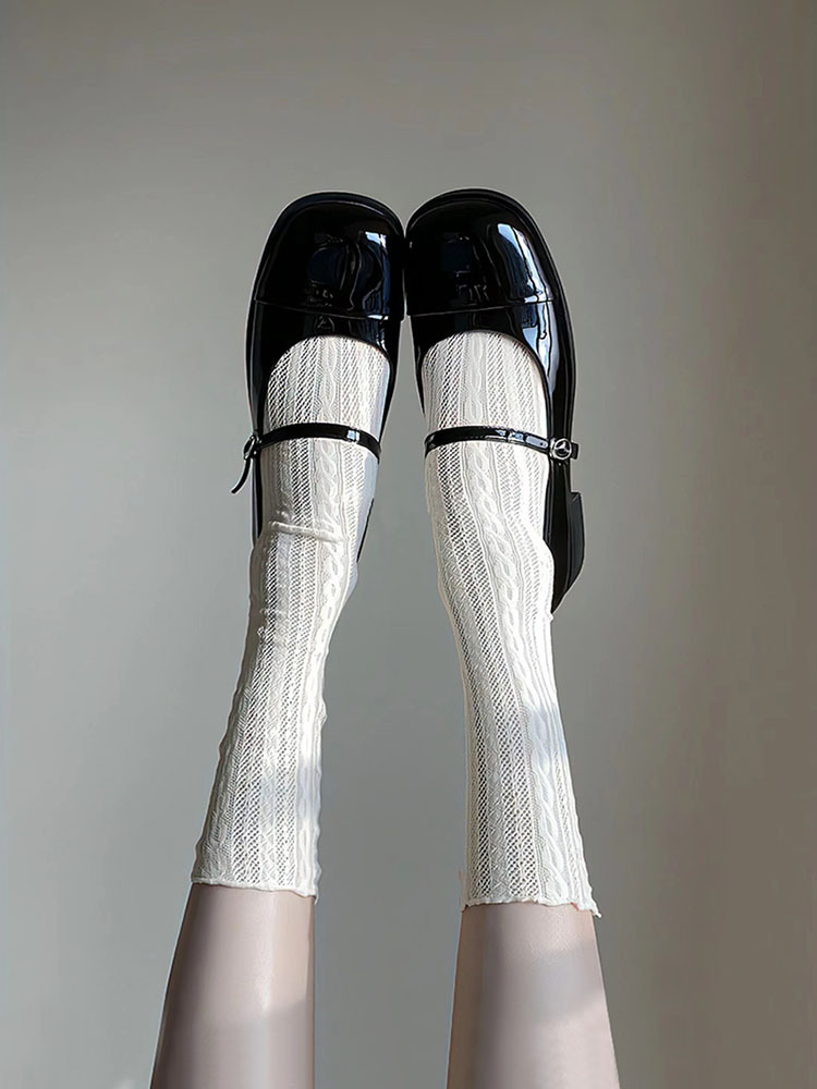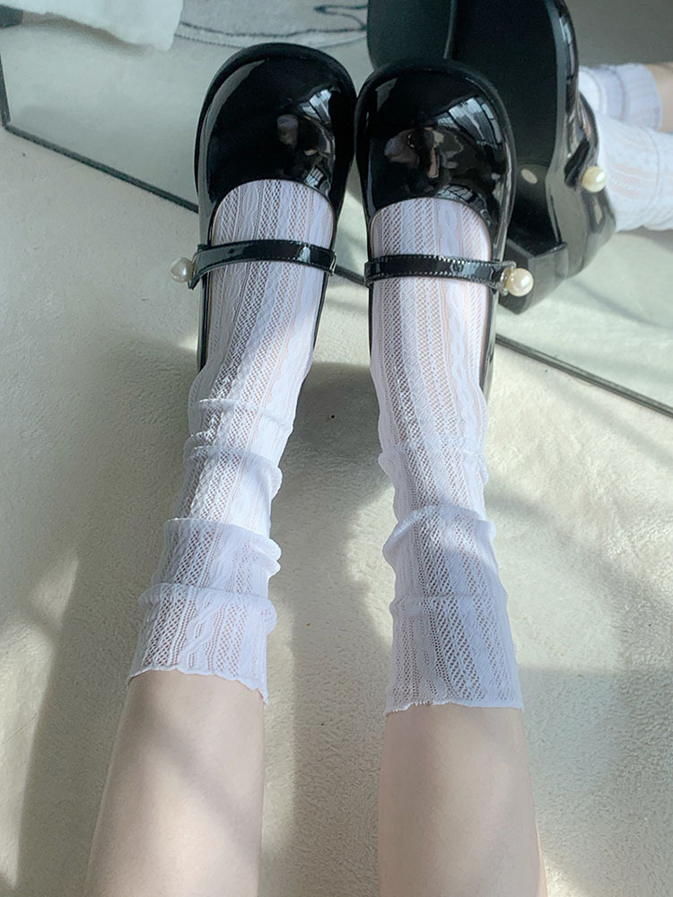 일본식 줄무늬 양말 여성용 중간 길이 꼬임 레이스 망사 양말 얇은 스타일