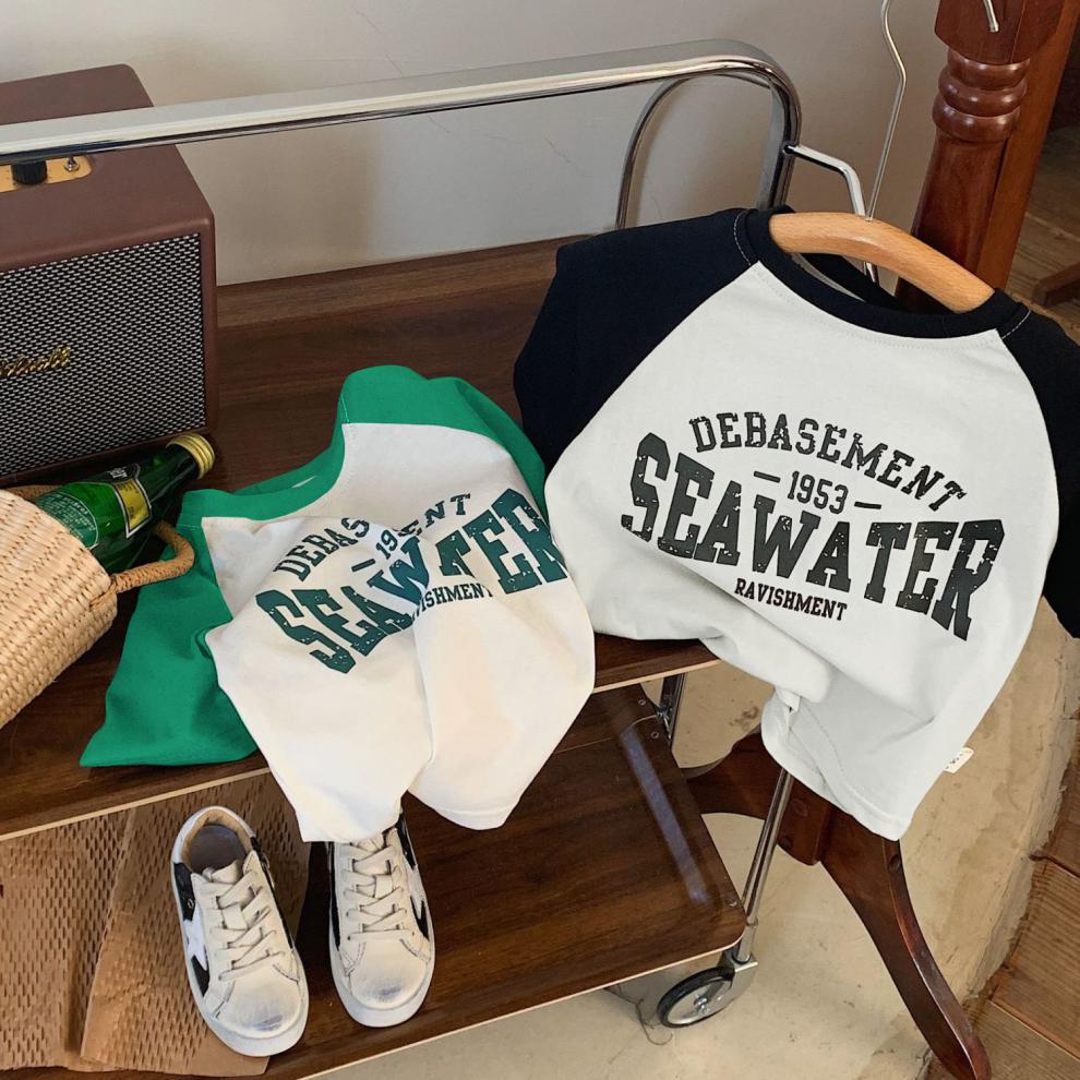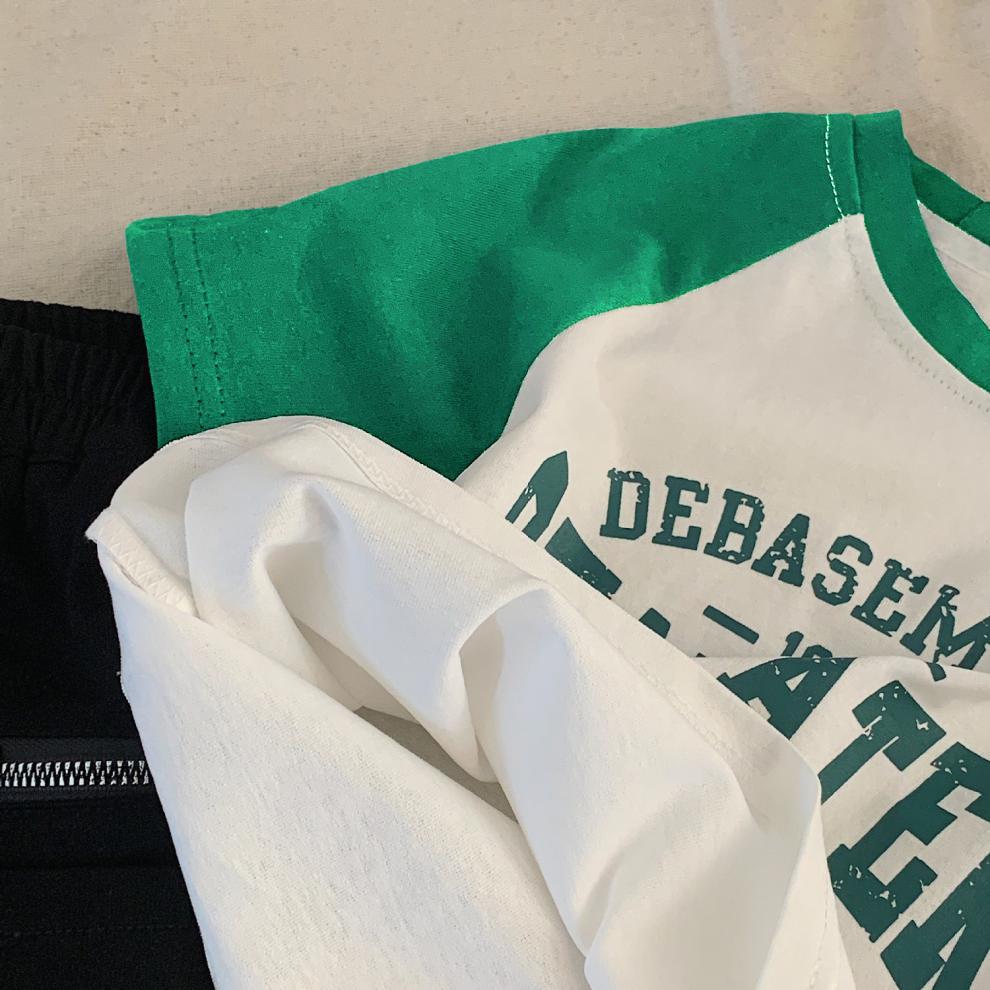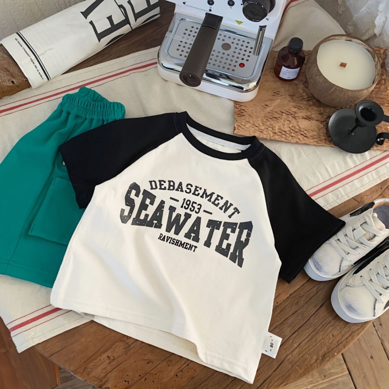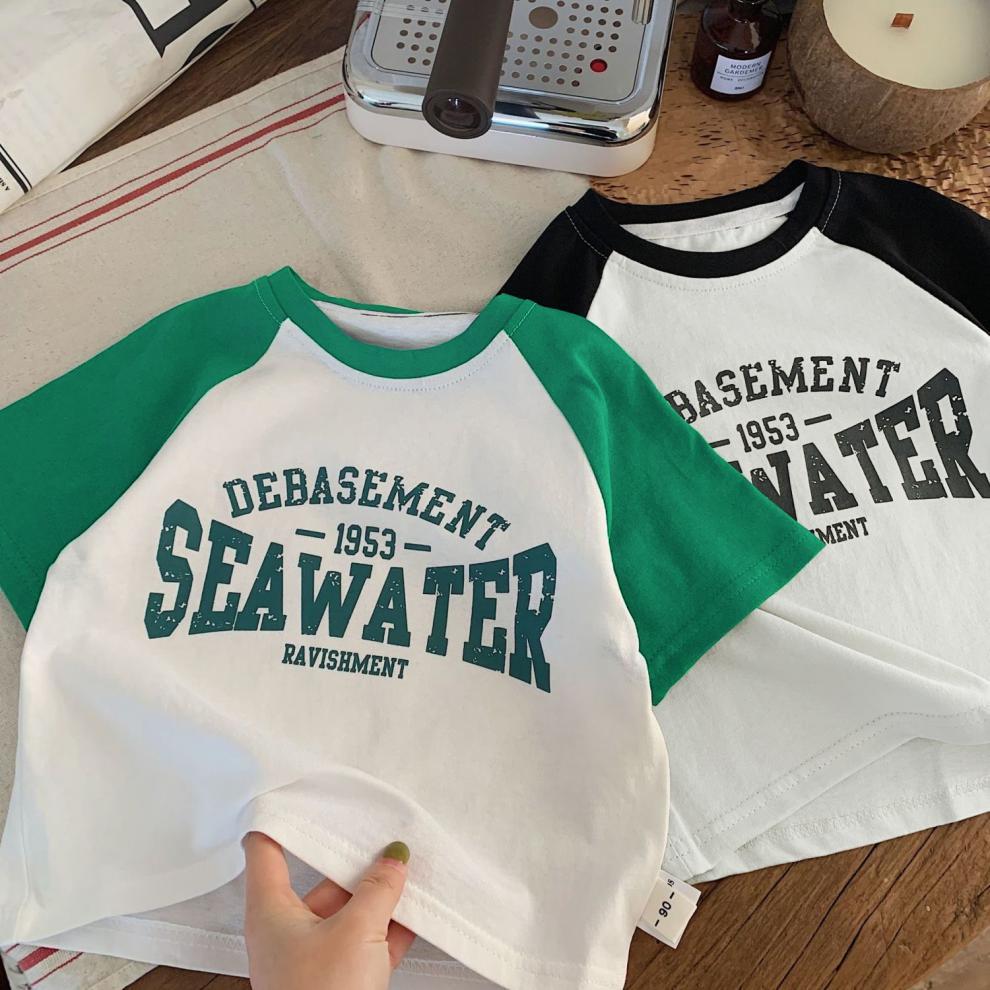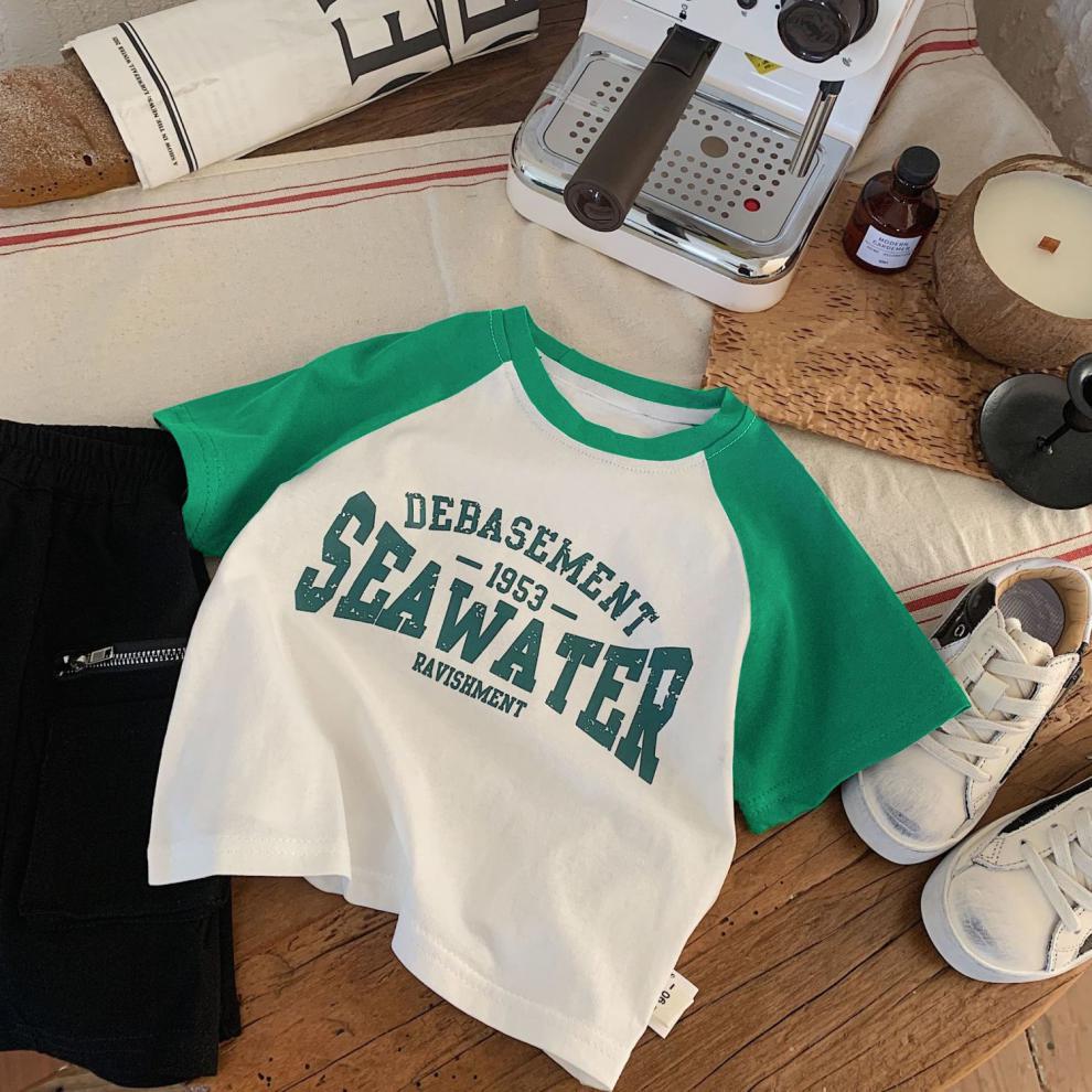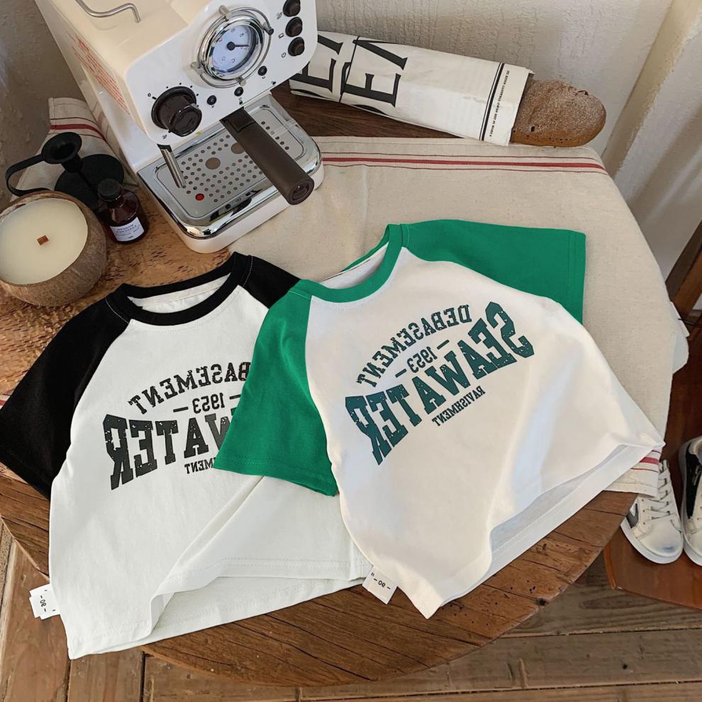 2024 년 여름 신형 코튼 반팔 티셔츠 남학생과 여학생용 탑 소형 어린이 핸섬 캐주얼 서양식 어린이 아기스토어 가기