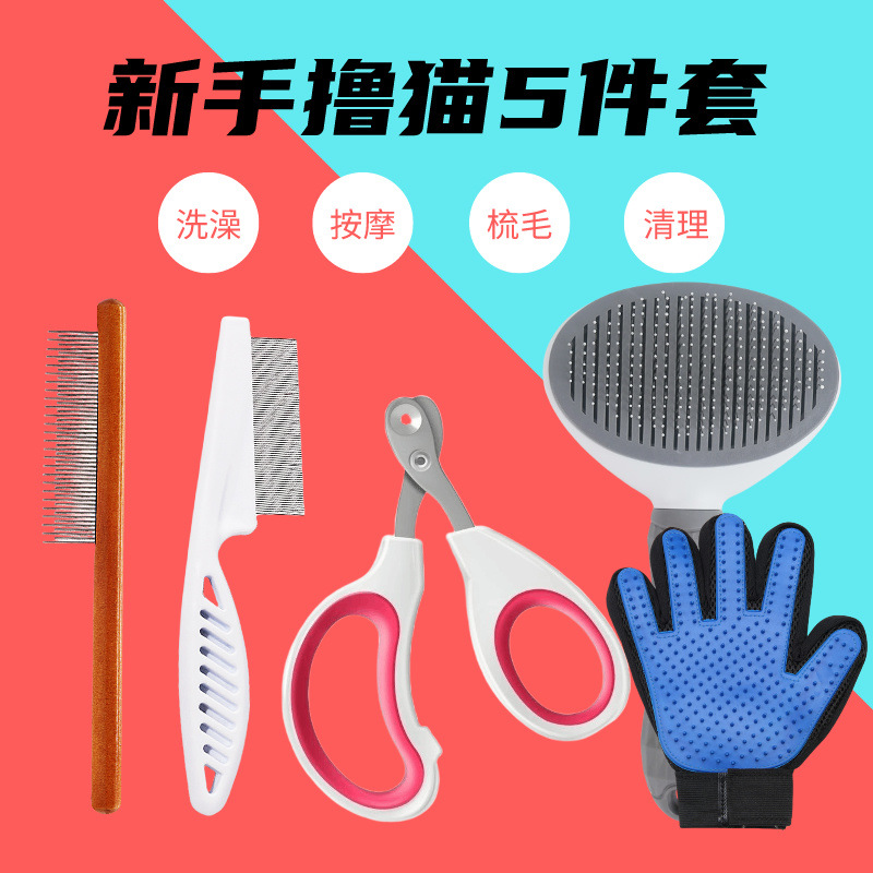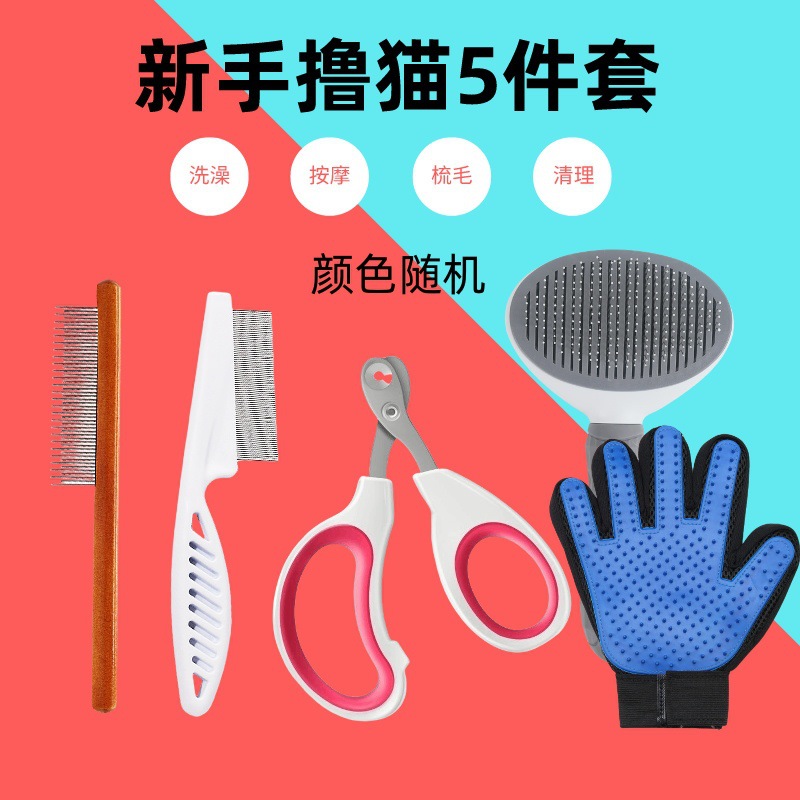 고양이 빗, 애완동물 털 손질용, 고양이 털 엉킴 풀기용, 고양이 둥근 구멍 손톱깎이 세트, 벼룩 제거 및 털 엉킴 풀기 도구, 털 정돈스토어 가기
