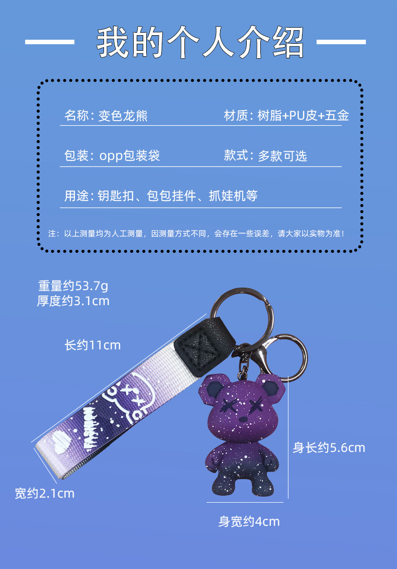 창조적 인 수지 폭력적인 곰 키 체인 패션 스타 곰 펜던트 자동차 가방 펜던트 작은 상품 도매