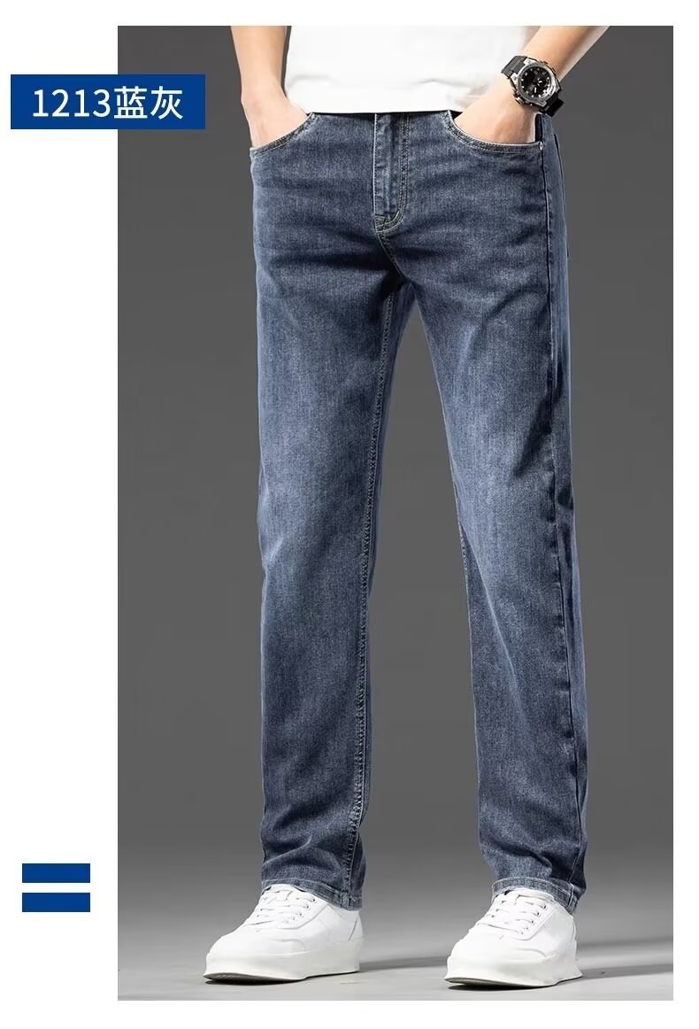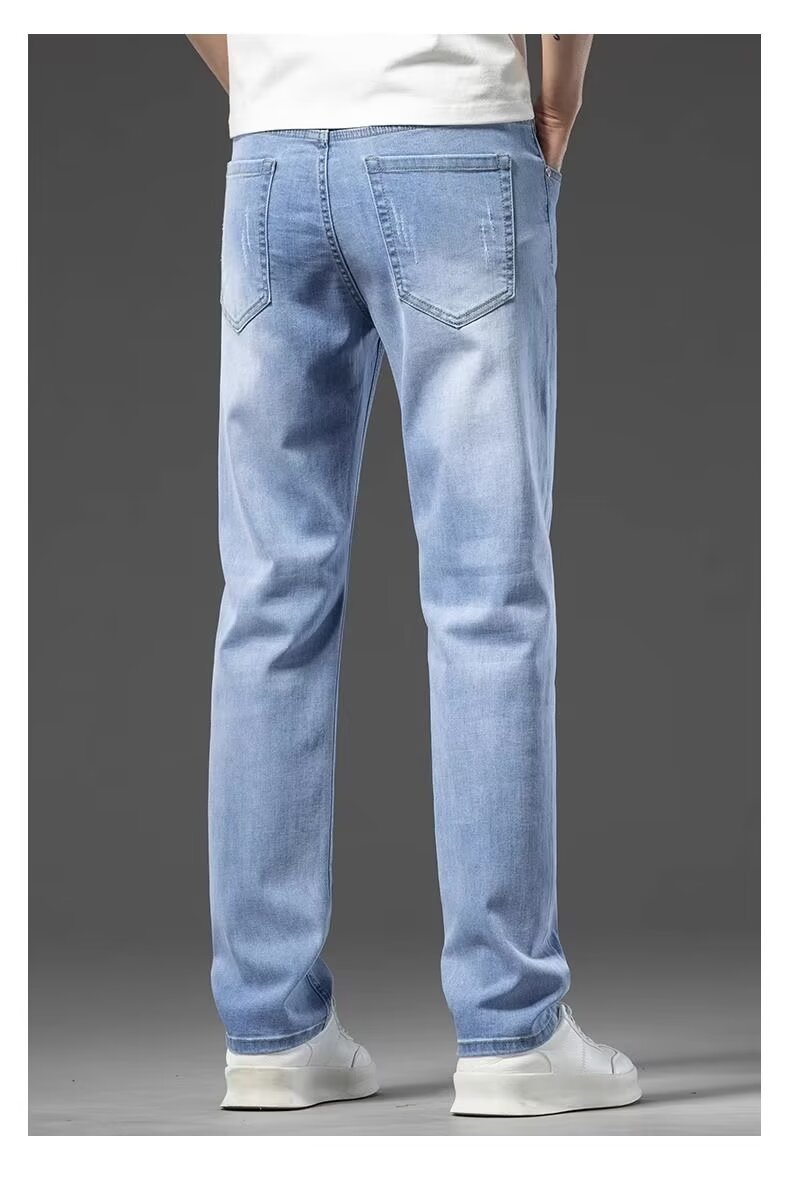 라이트 블루 하이 엔드 남자 청바지 얇은 2024 여름 새로운 느슨한 스트레이트 스트레치 긴 바지 올매치 트렌디스토어 가기
