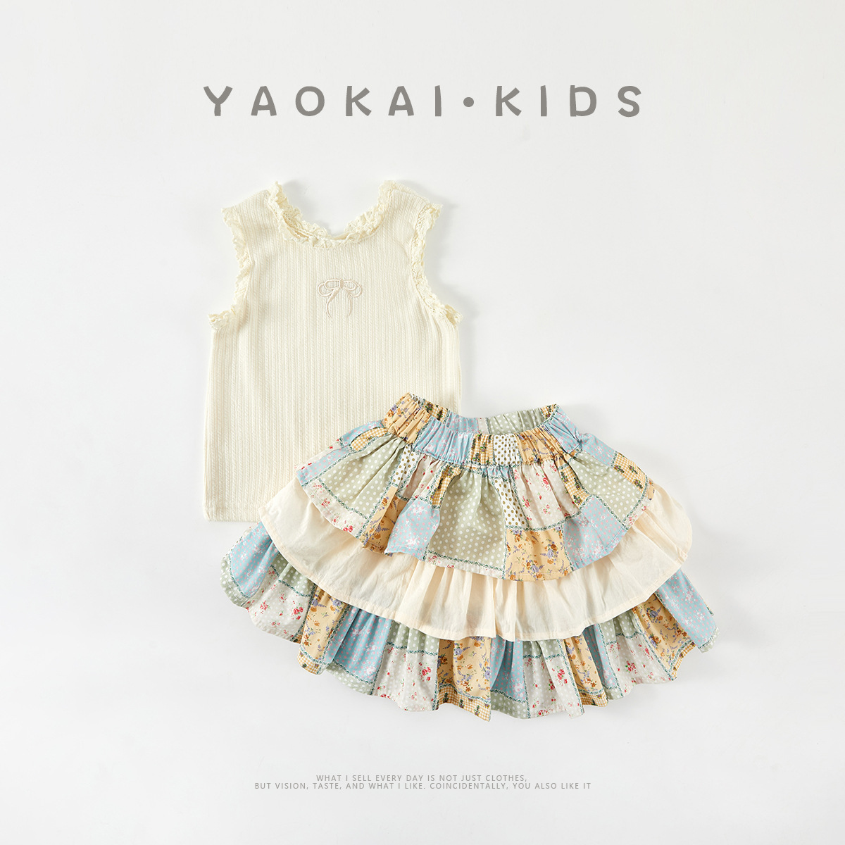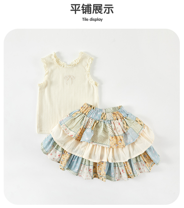 여아 여름옷 얇은 스타일리시한 레이스 민소매 여름 티셔츠 상큼한 꽃무늬 짧은 치마 외출용스토어 가기