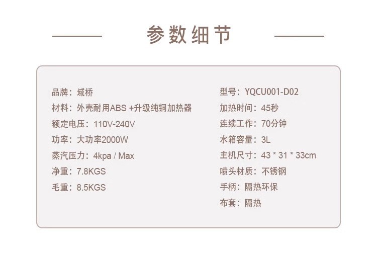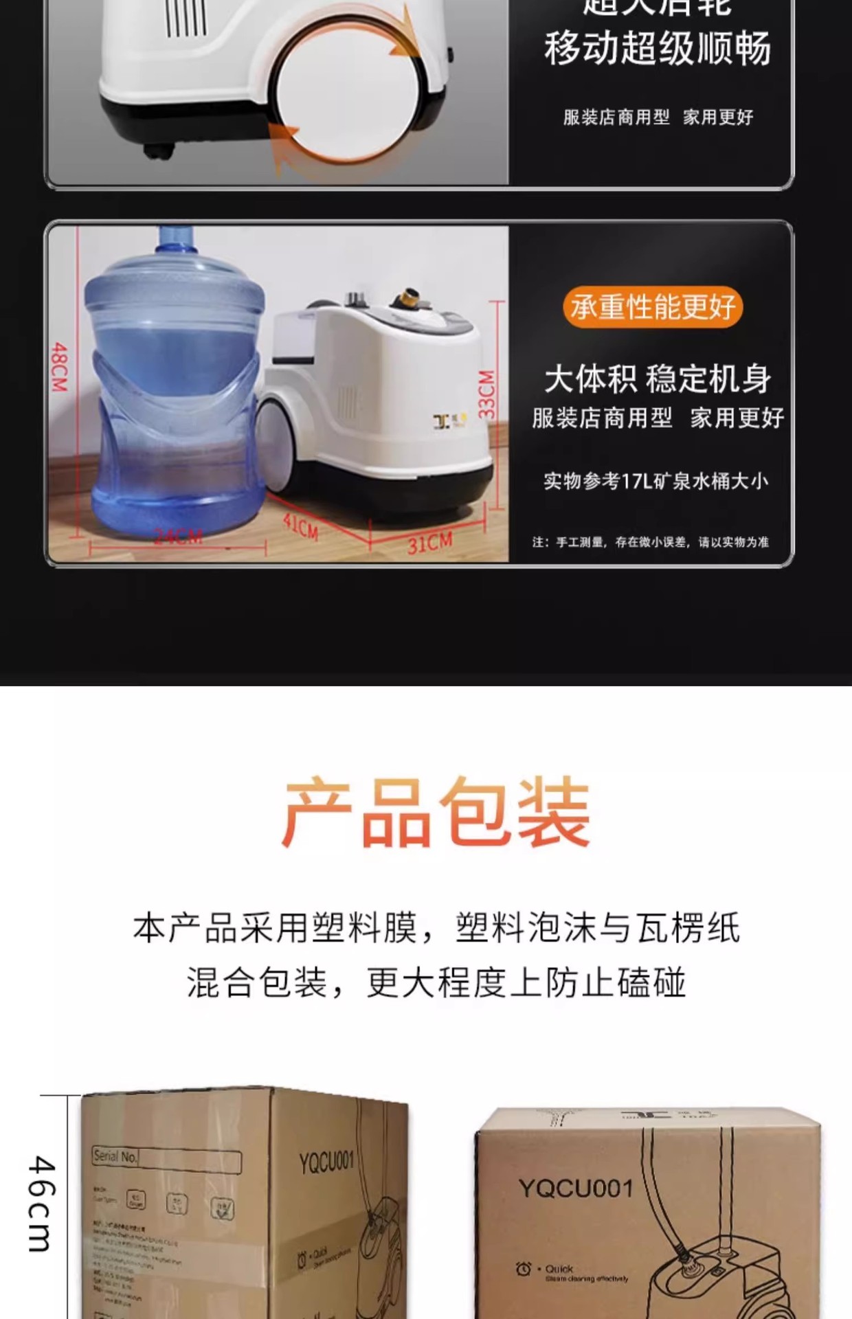 Yuqiao 교수형 철 기계 고출력 증기 철 의류 매장 가정용 YQCU001-D02 구리 코어 2000 와트 상업