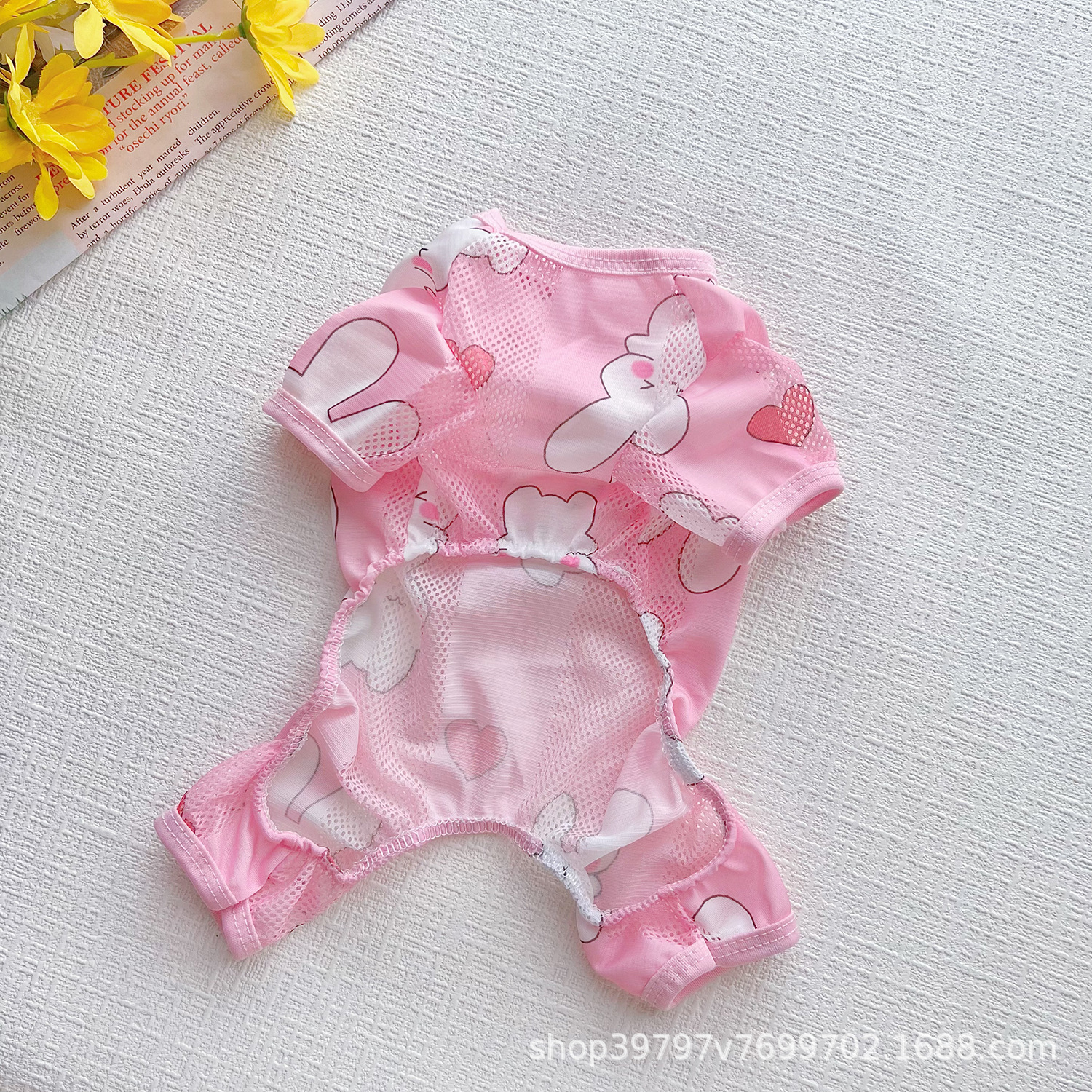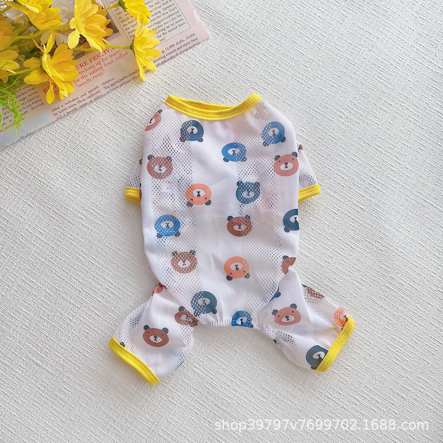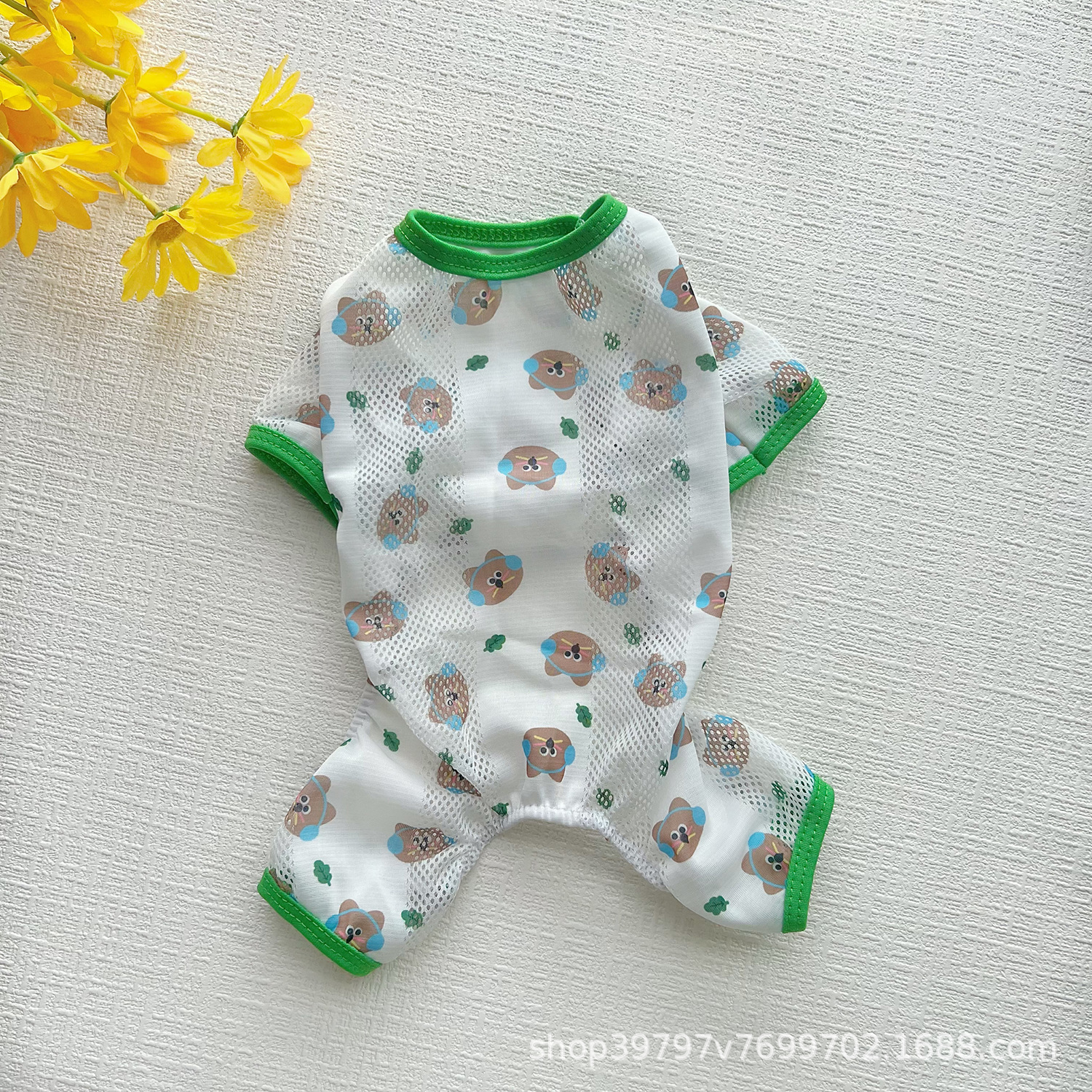Ins 스타일 개 옷 여름 봄과 여름 얇은 메쉬 통기성 네 다리 옷 반대로 머리 작고 중간 테디 베어
