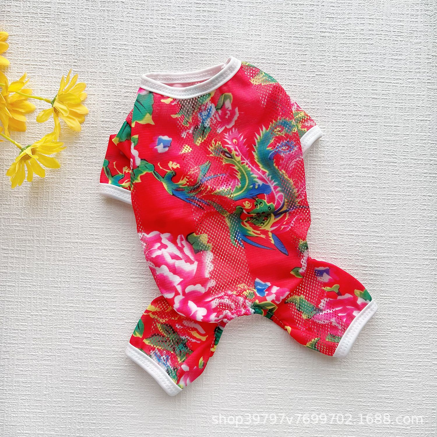 Ins 스타일 개 옷 여름 봄과 여름 얇은 메쉬 통기성 네 다리 옷 반대로 머리 작고 중간 테디 베어스토어 가기