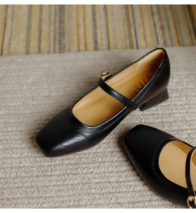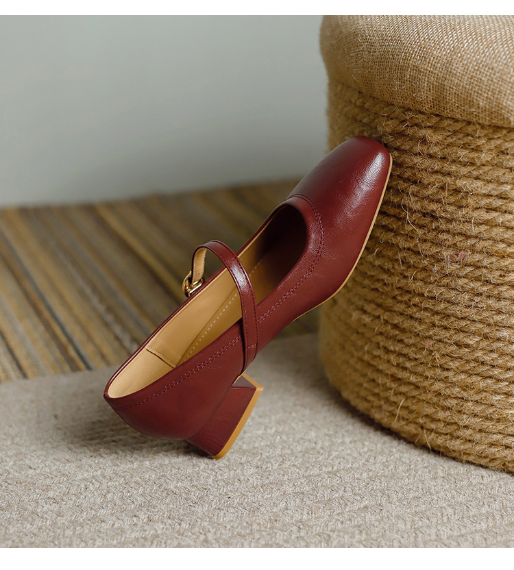 3-5cm 프랑스 메리 제인 싱글 신발 여성의 여름 두꺼운 힐 올 매치 레드 가죽 신발 이브닝 슈즈 미들 힐 여성 신발 41스토어 가기