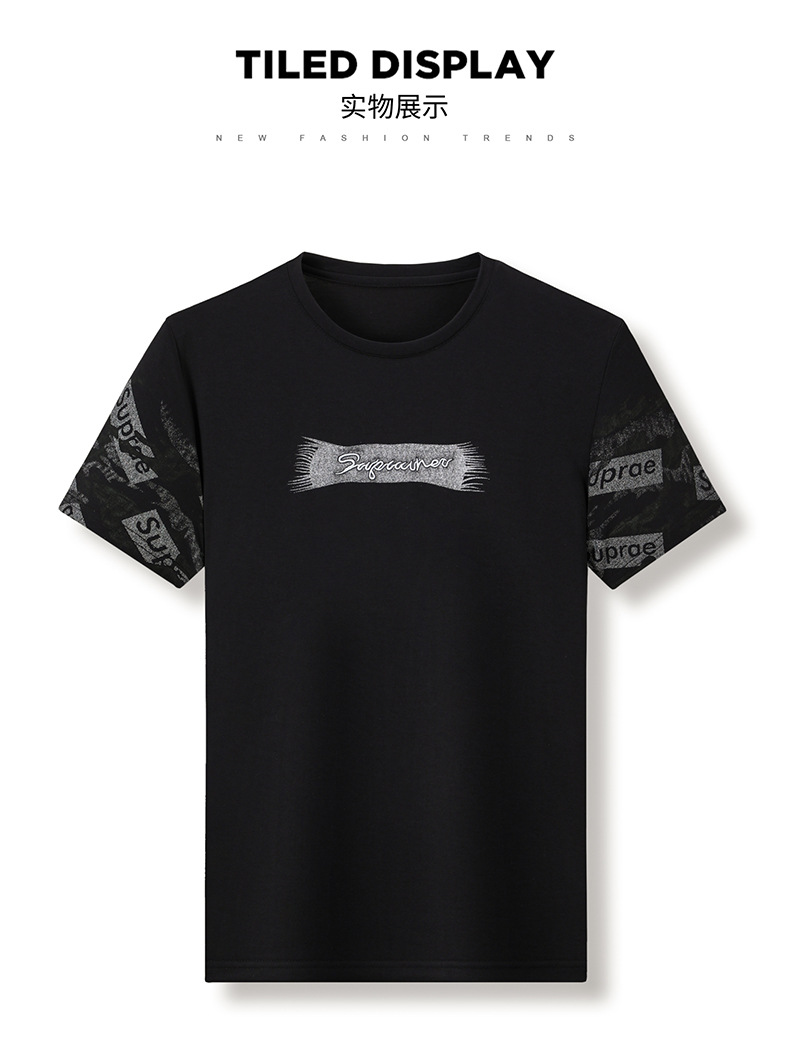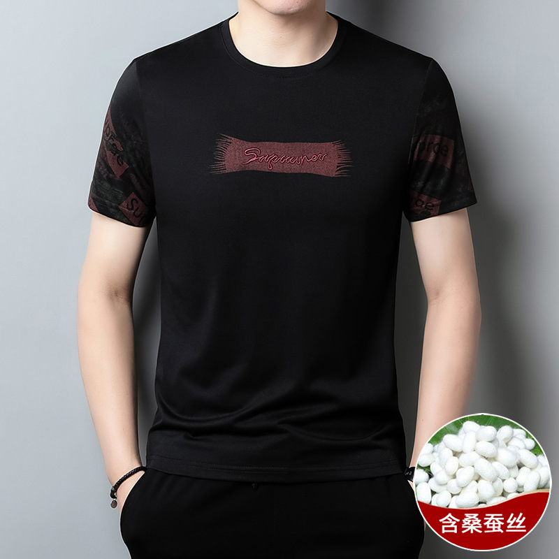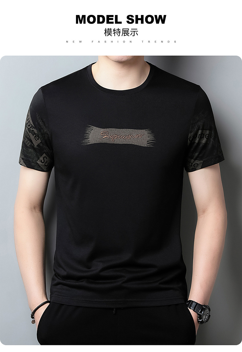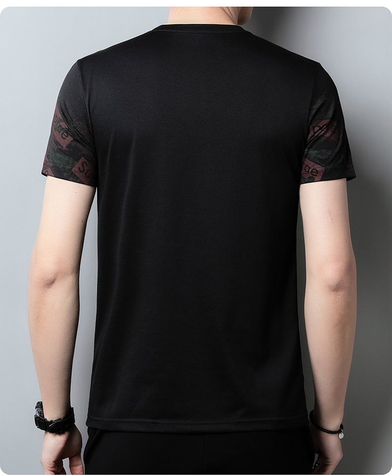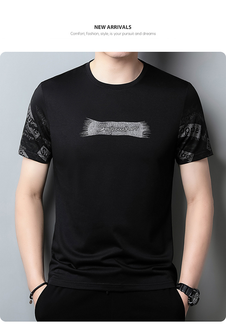 젊고 중년의 새로운 반소매 라운드 넥 티셔츠 남성용 여름 얇은 인쇄 유행 쿨 통기성 반소매 최고 트렌디스토어 가기