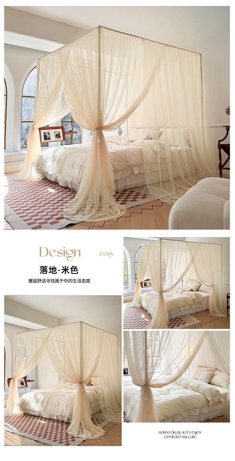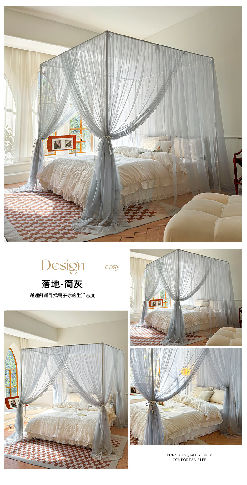간단한 공주 스타일 클래스 바닥 서 모기장 가정용 침실 3 도어 침대 커튼 모기장 암호화 된 모기장 도매 및 유통 업체스토어 가기