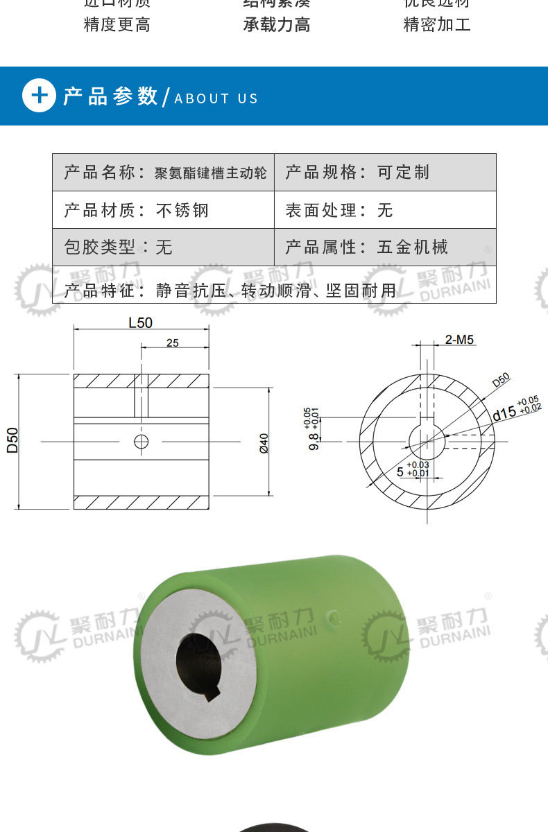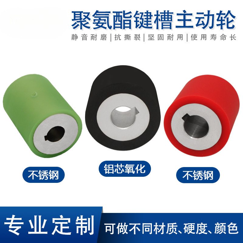 폴리 우레탄 고무 코팅 휠 스테인레스 스틸 홀 키웨이 액티브 드라이브 풀리 재고 라인 파워 롤러 롤러