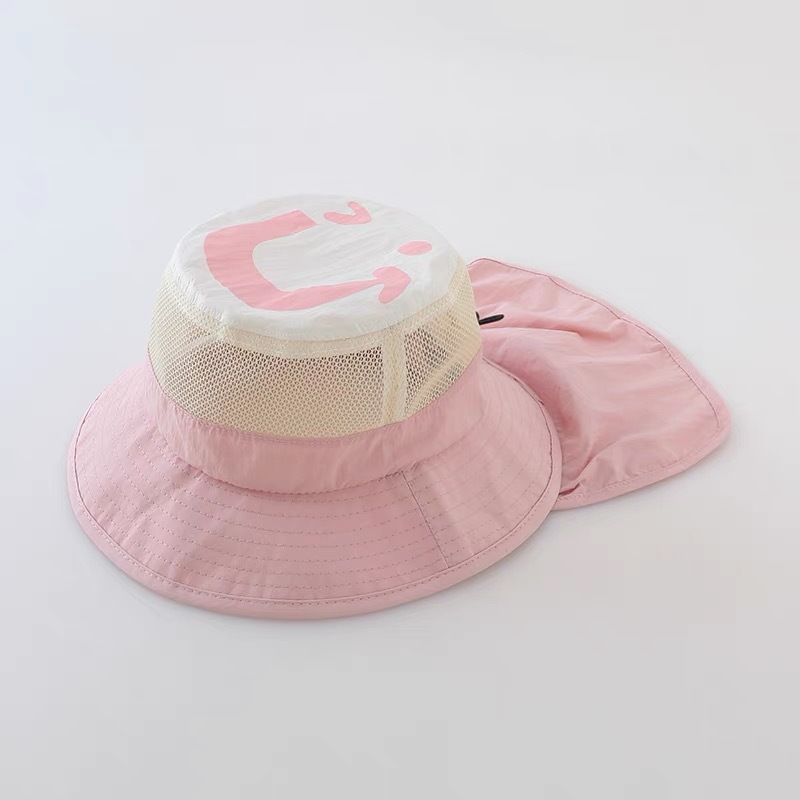 여름 아기 자외선 차단제 모자 한국식 메쉬 통기성 목 보호 목도리 모자 자외선 차단 로프 어부 모자