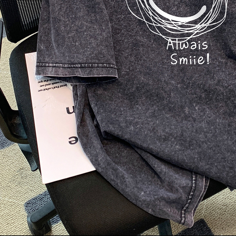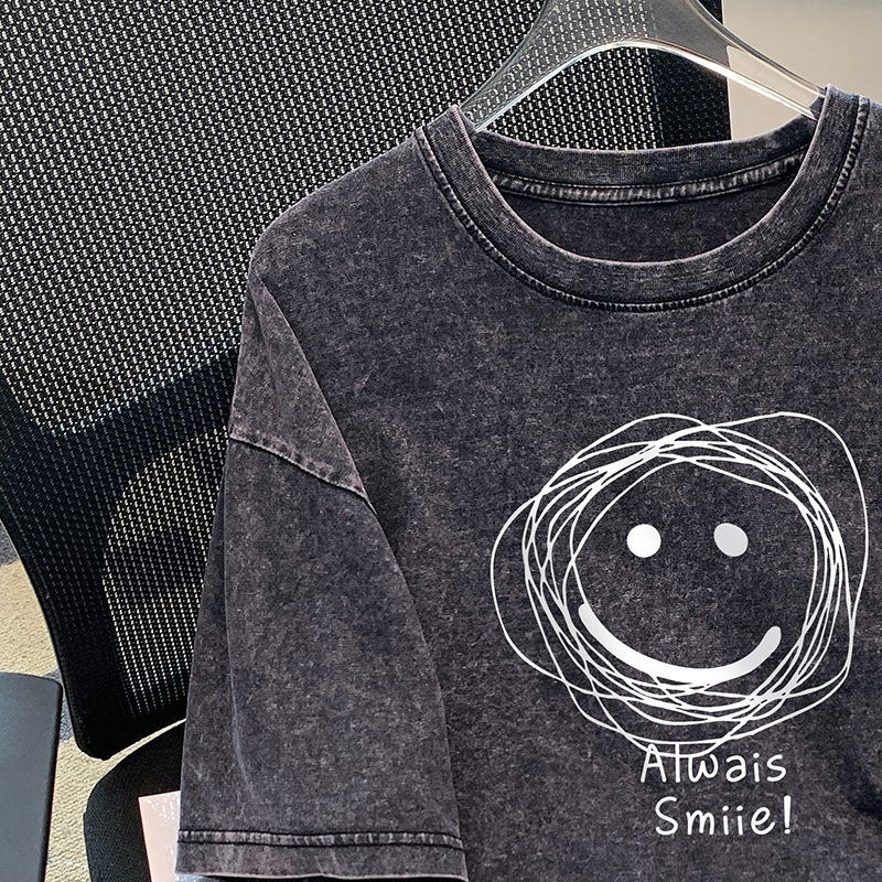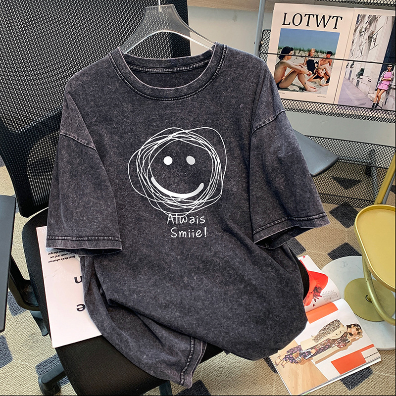 통통녀 헤비 아메리칸 스타일 하이 스트리트 레트로 반팔 티셔츠 남성과 여성의 느슨한 커플의 트렌디 한 브랜드 올드 코튼 반소매 탑스토어 가기