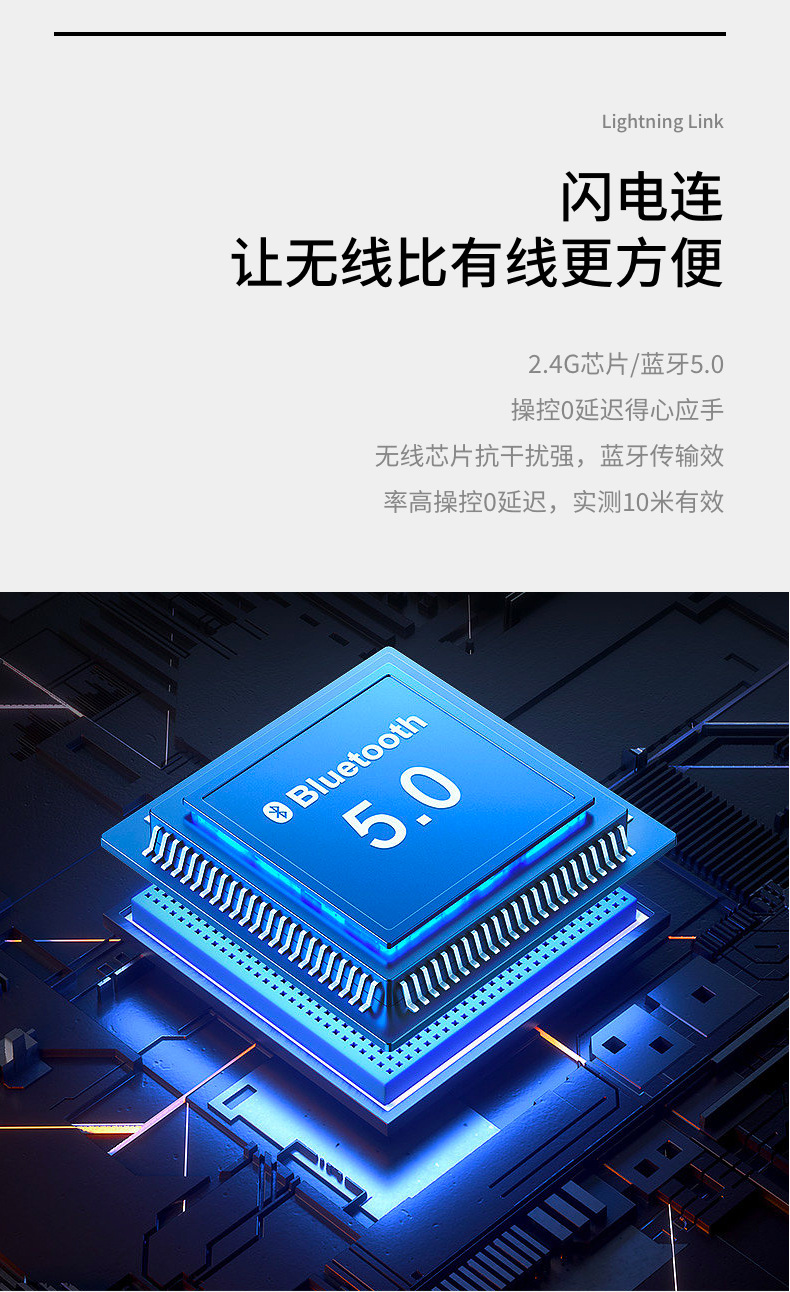 2.4G 连接:手柄配接收器可以在没有蓝牙功能的台式电脑、车载智慧屏、电视、机顶盒等设备无线连接;