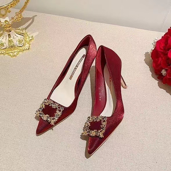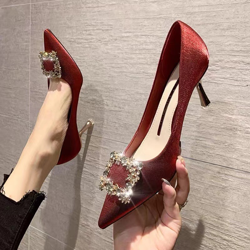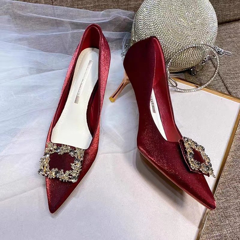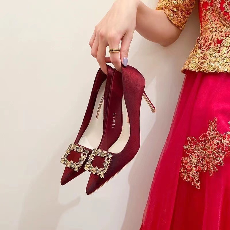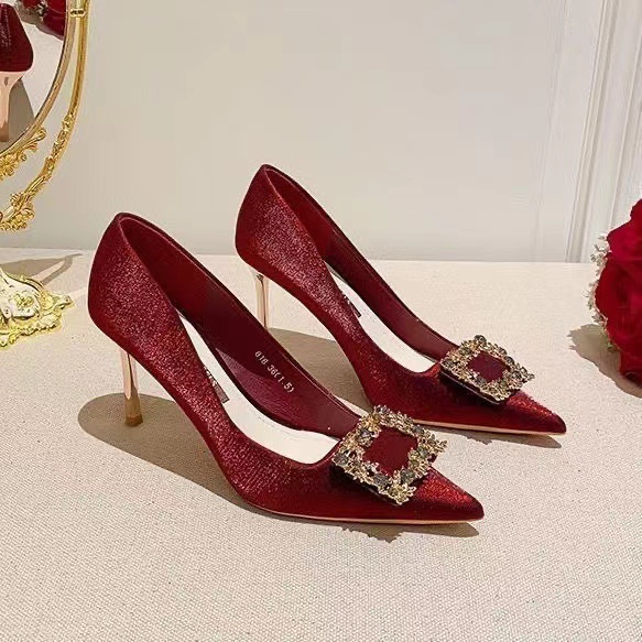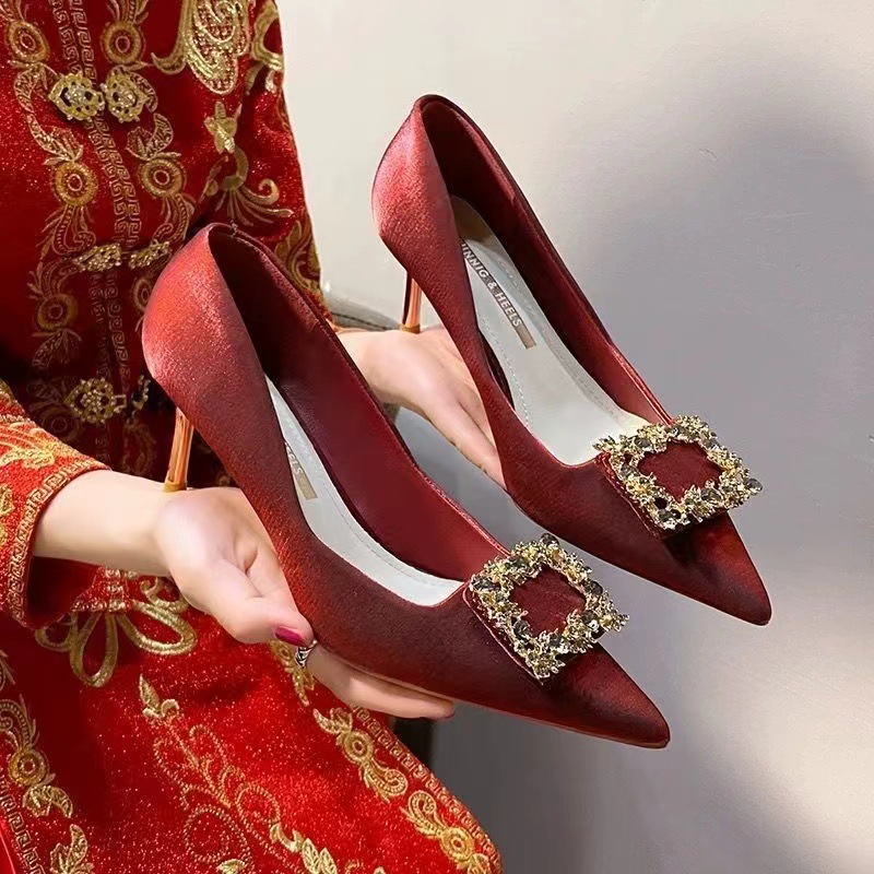 빨간 하이힐 여성 스틸레토 웨딩 슈즈 2025 봄 인터넷 연예인 다재다능한 싱글 슈즈 Xiuhe 하이힐 싱글 슈즈스토어 가기