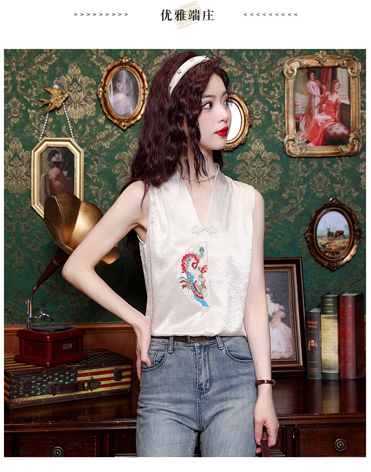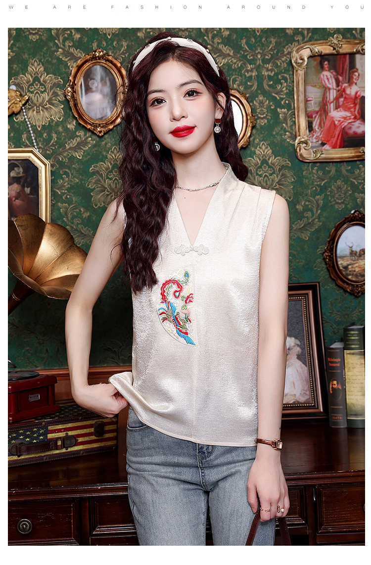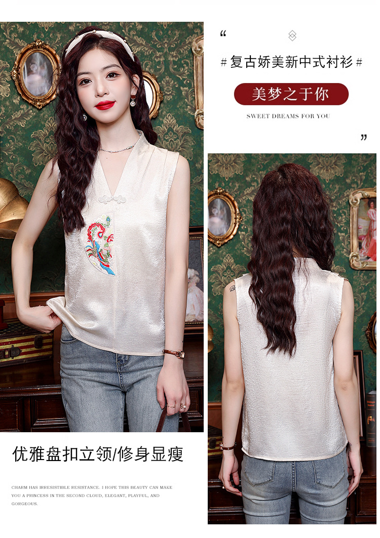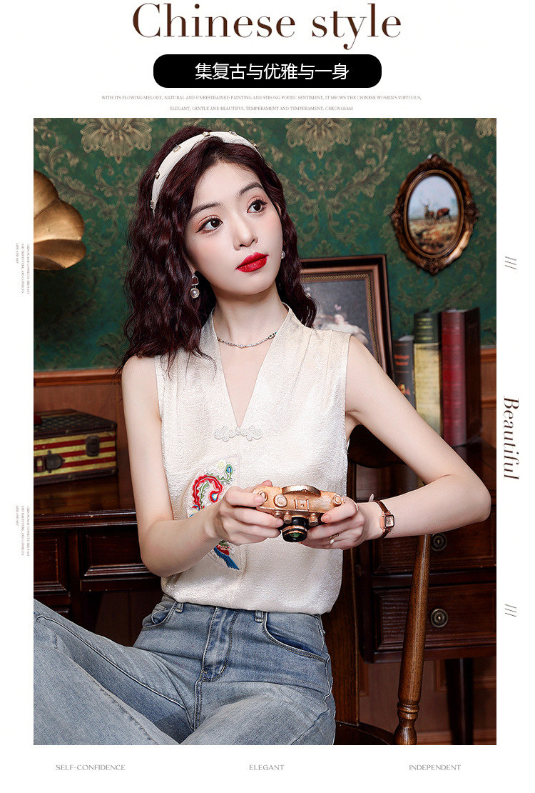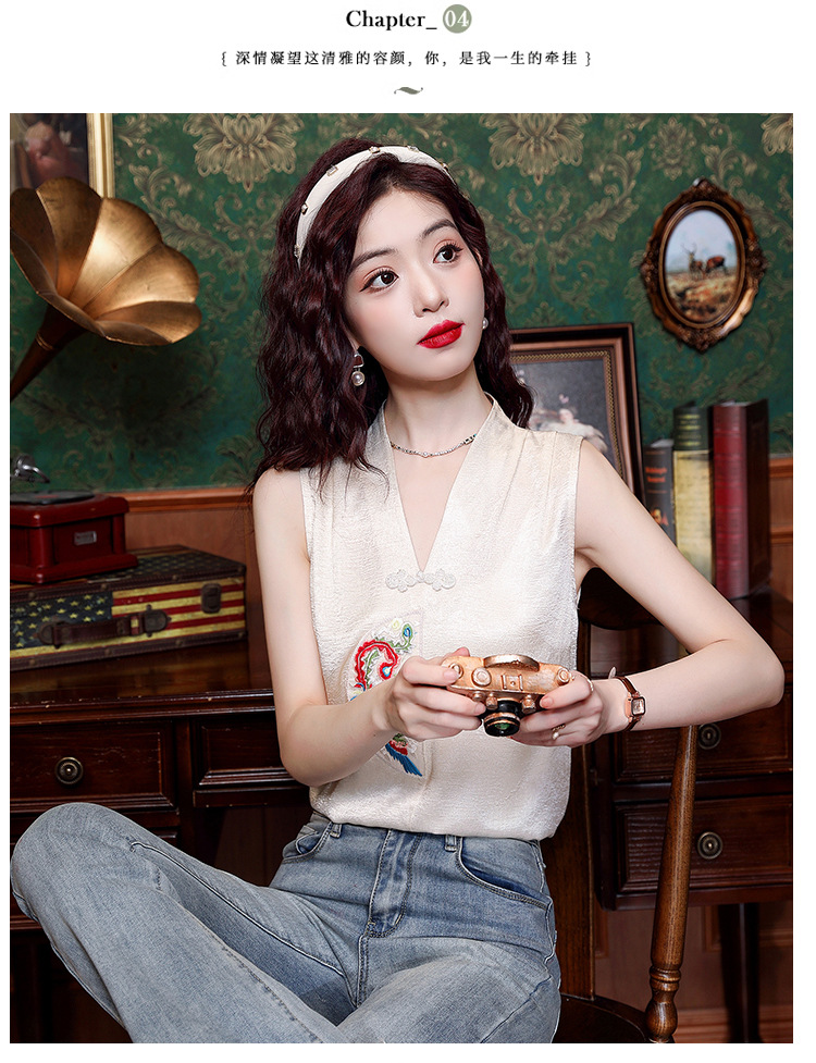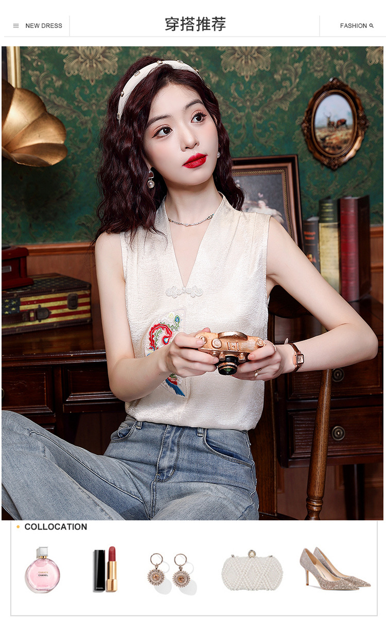 시원한 여름 전국 조수 민소매 티셔츠 2024 여름 새로운 디자인 센스 틈새 레트로 V-넥 작은 조끼 탑스토어 가기