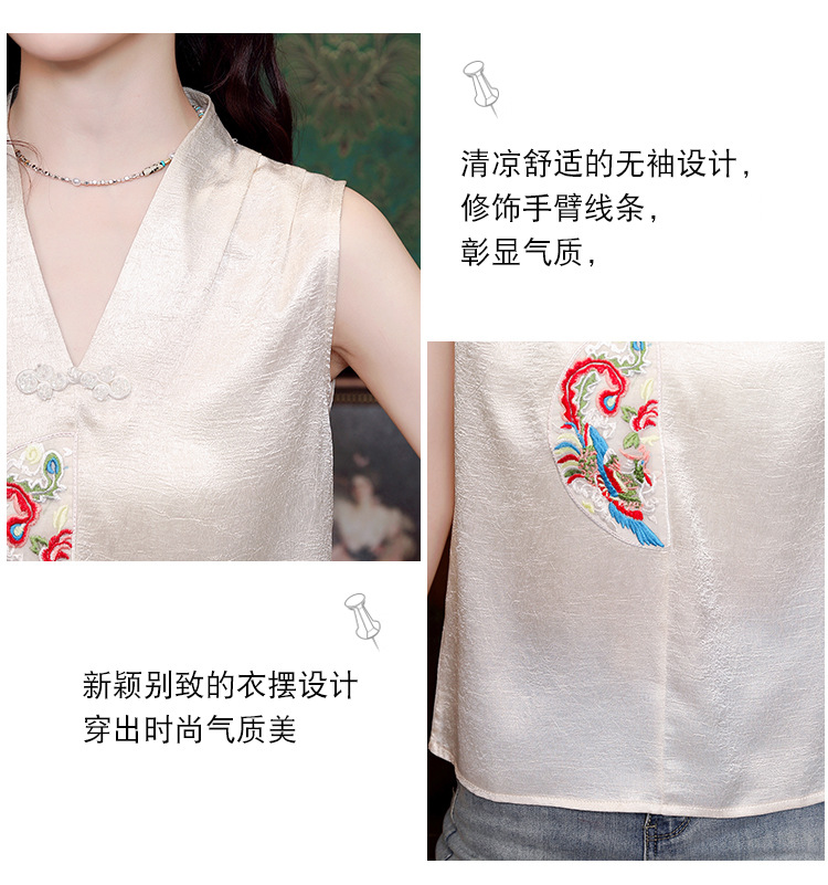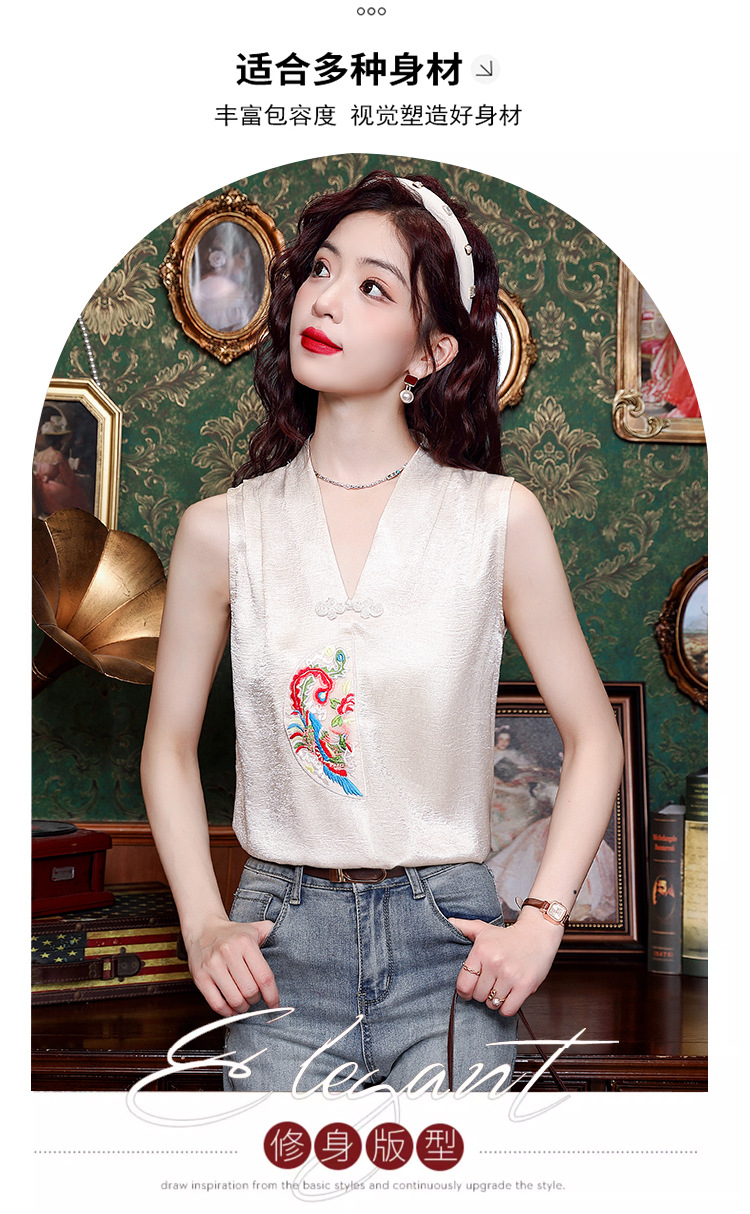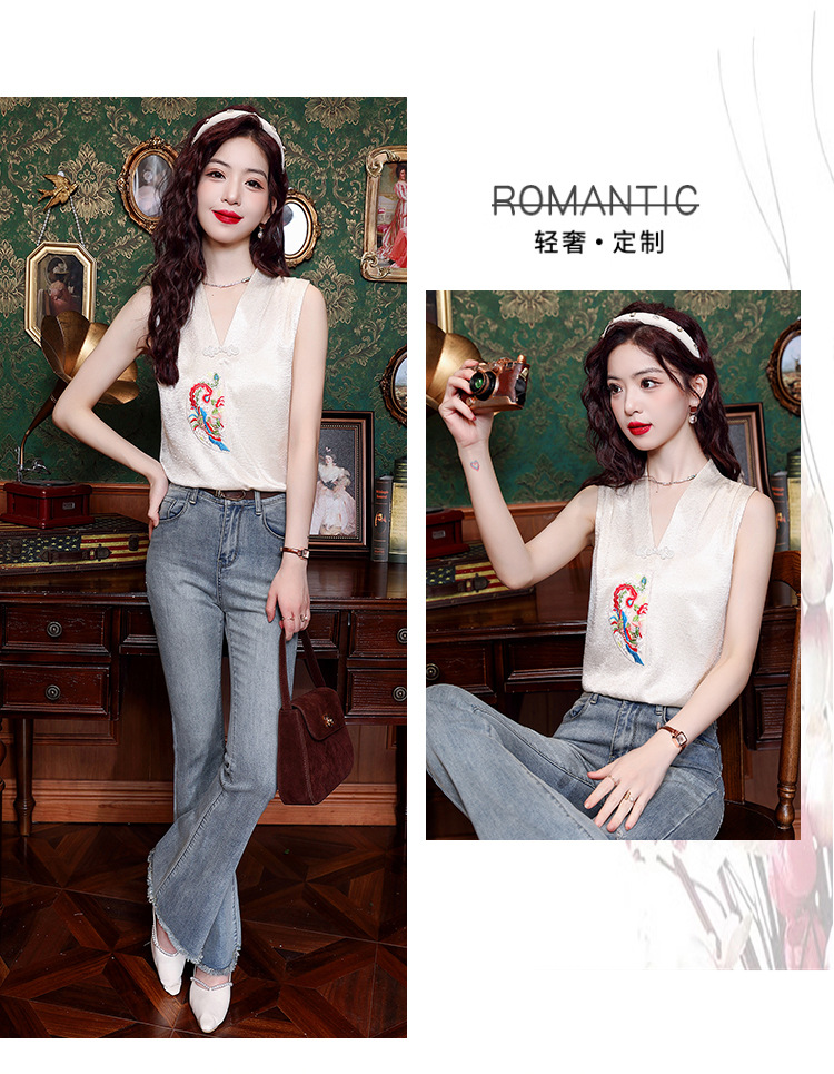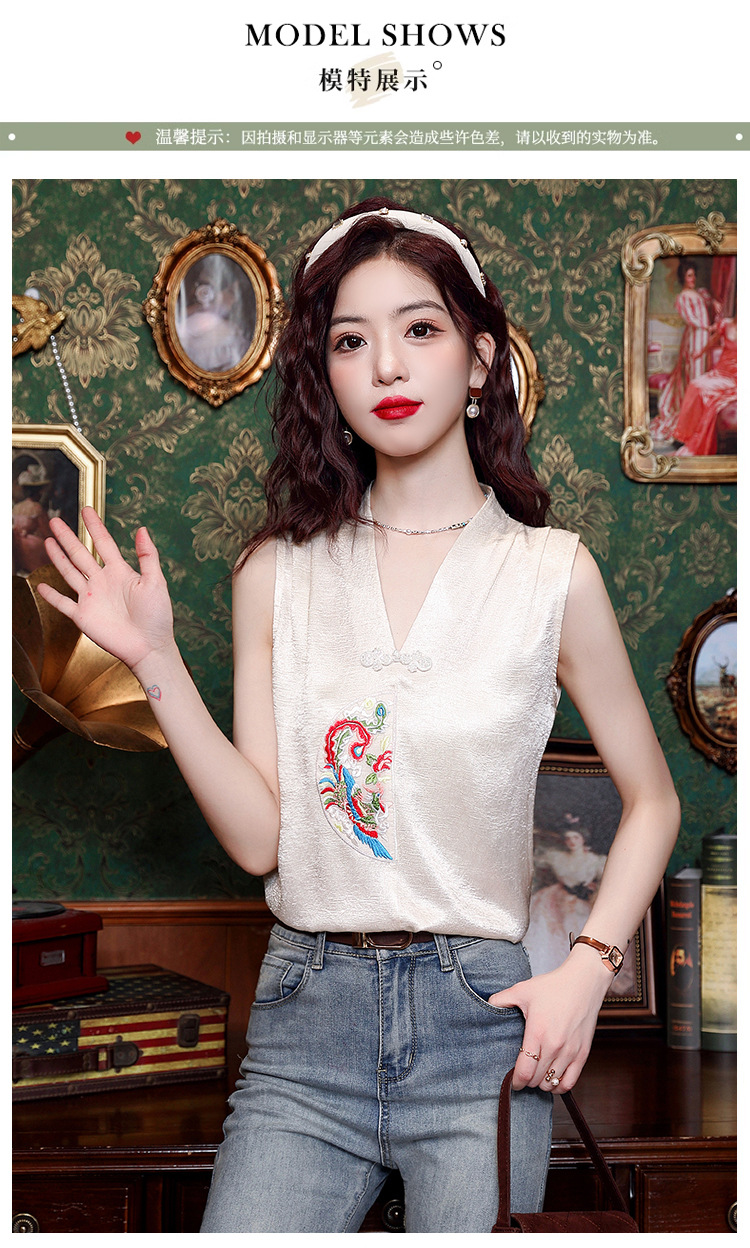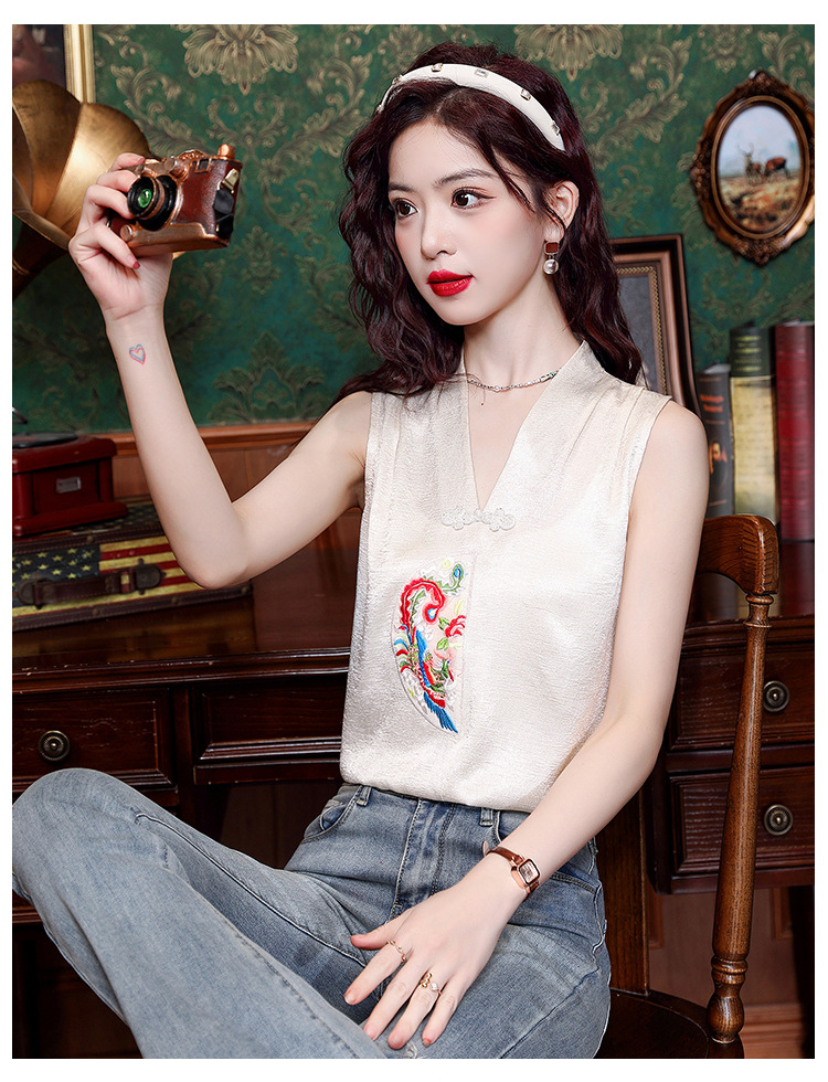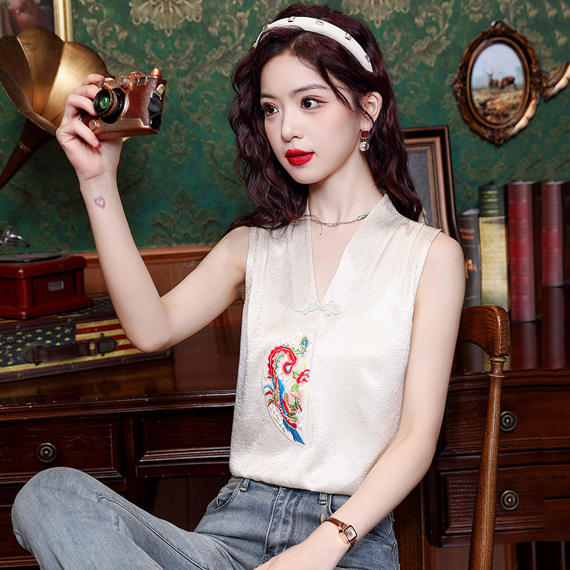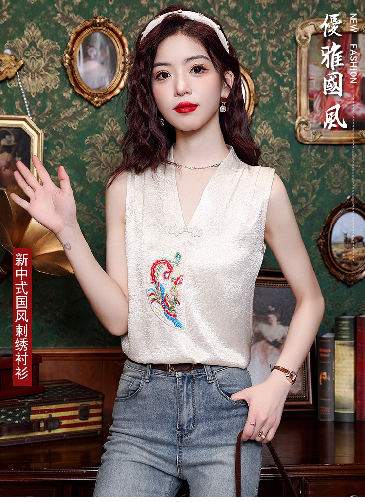 시원한 여름 전국 조수 민소매 티셔츠 2024 여름 새로운 디자인 센스 틈새 레트로 V-넥 작은 조끼 탑스토어 가기
