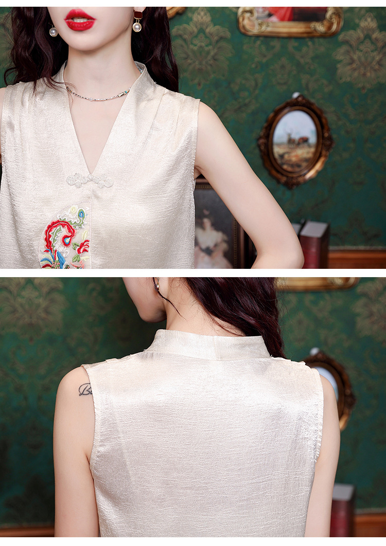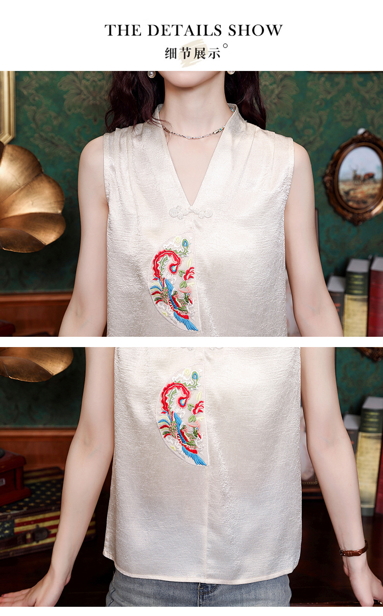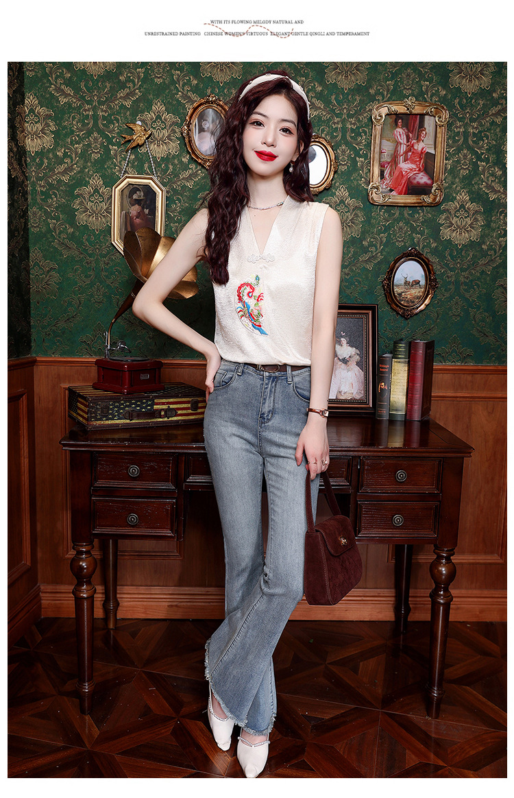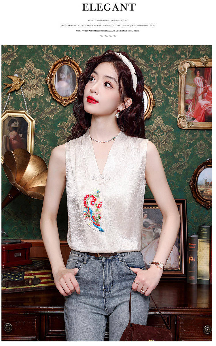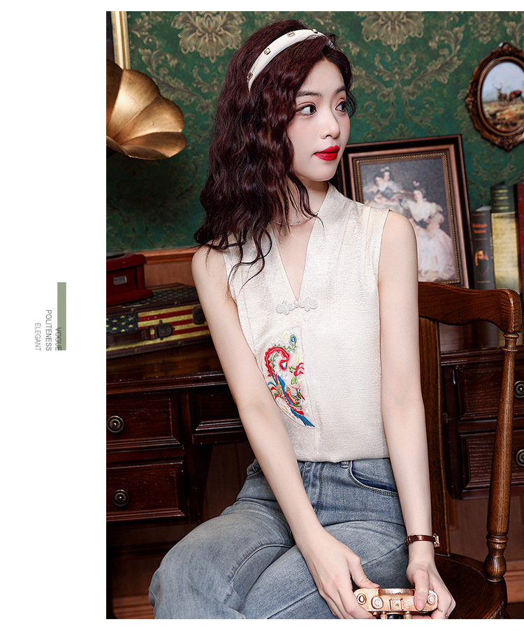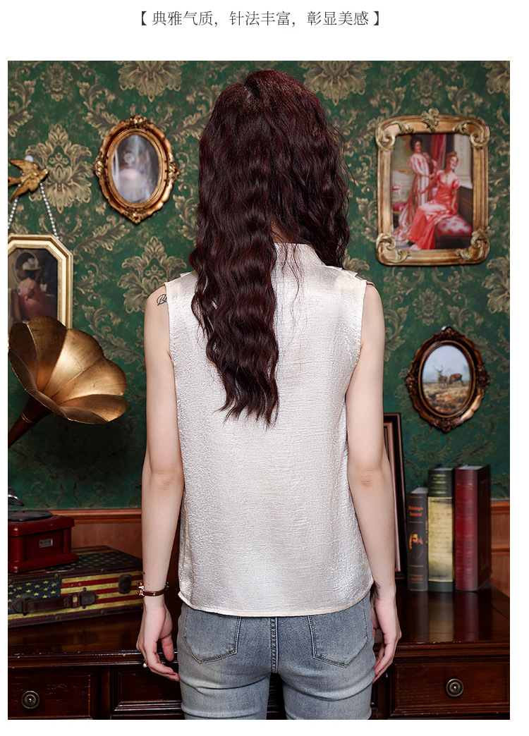 시원한 여름 전국 조수 민소매 티셔츠 2024 여름 새로운 디자인 센스 틈새 레트로 V-넥 작은 조끼 탑스토어 가기