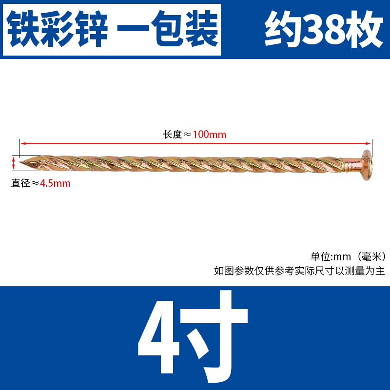 • 컬러 아연 트위스트 네일 4 인치 10cm 팩 (약 38)