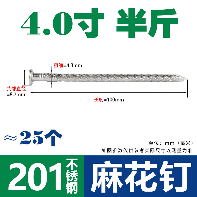 • 201 트위스트 네일 4.0 인치-반 킬로 (약 25)