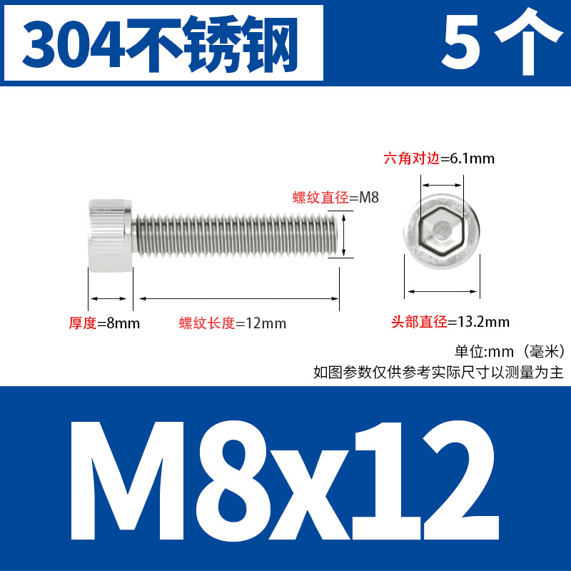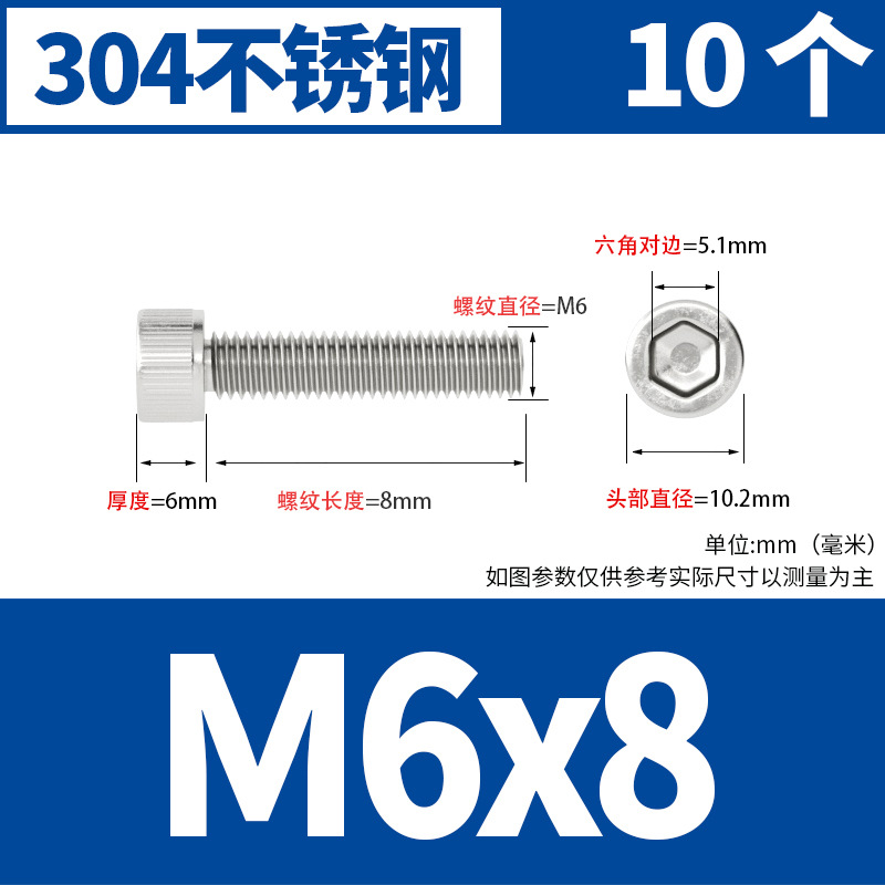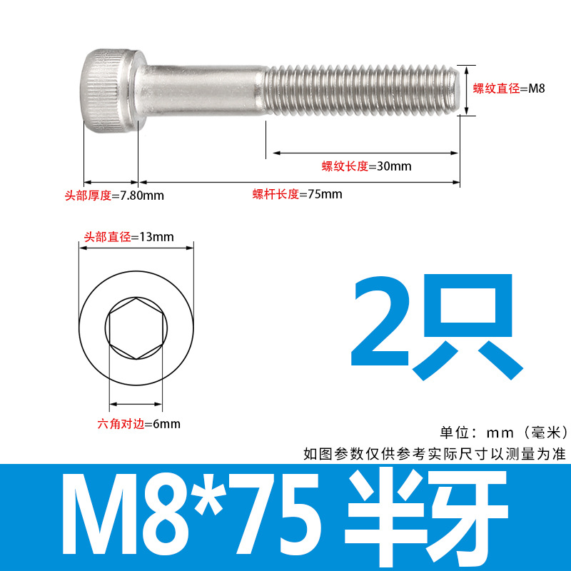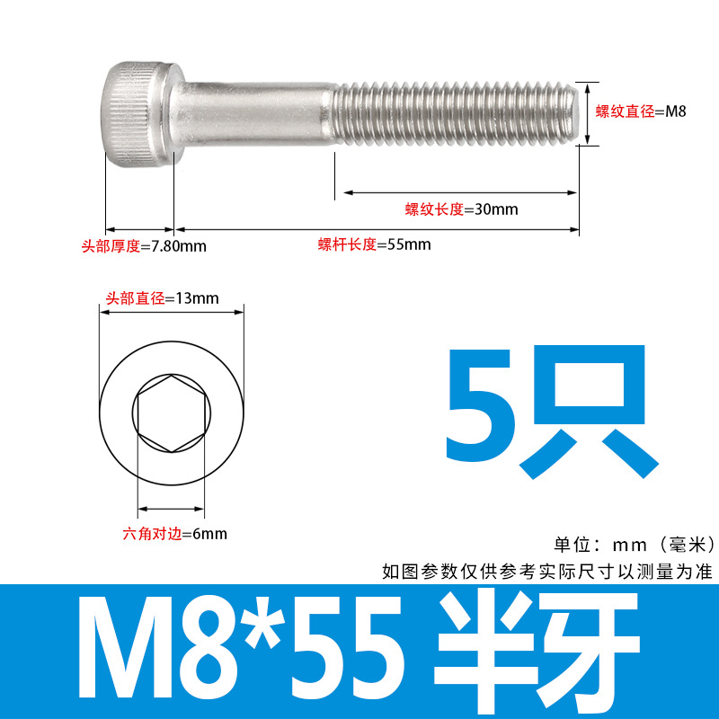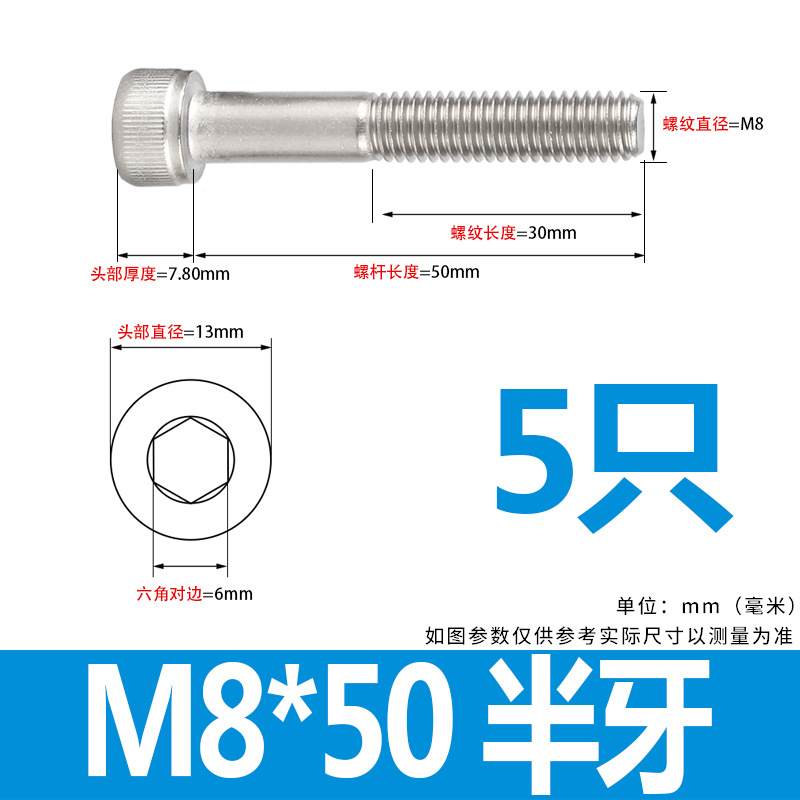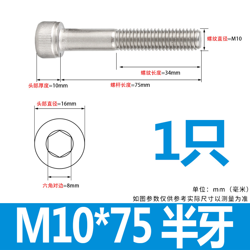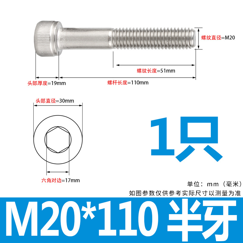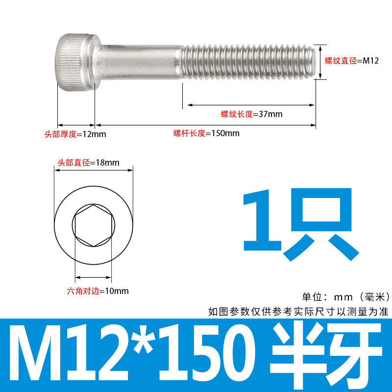 304 스테인레스 스틸 반 치아 육각 소켓 헤드 스크류 실린더 헤드 볼트 확장 컵 헤드 스크류 M4M5M6M8M10-M20스토어 가기
